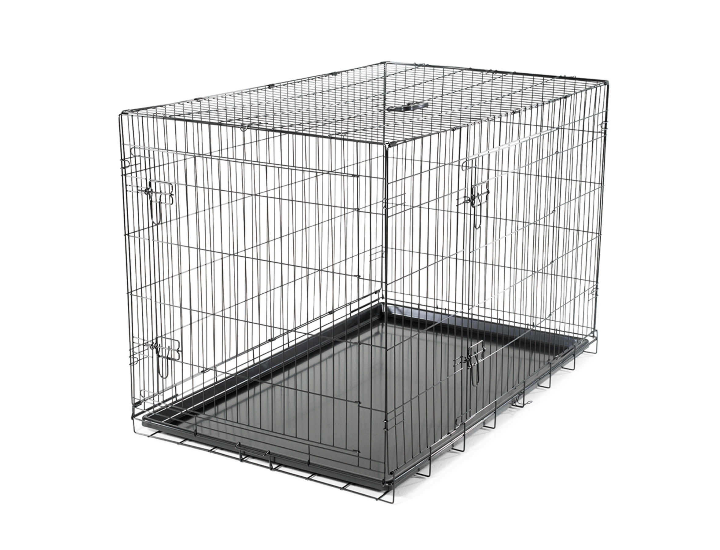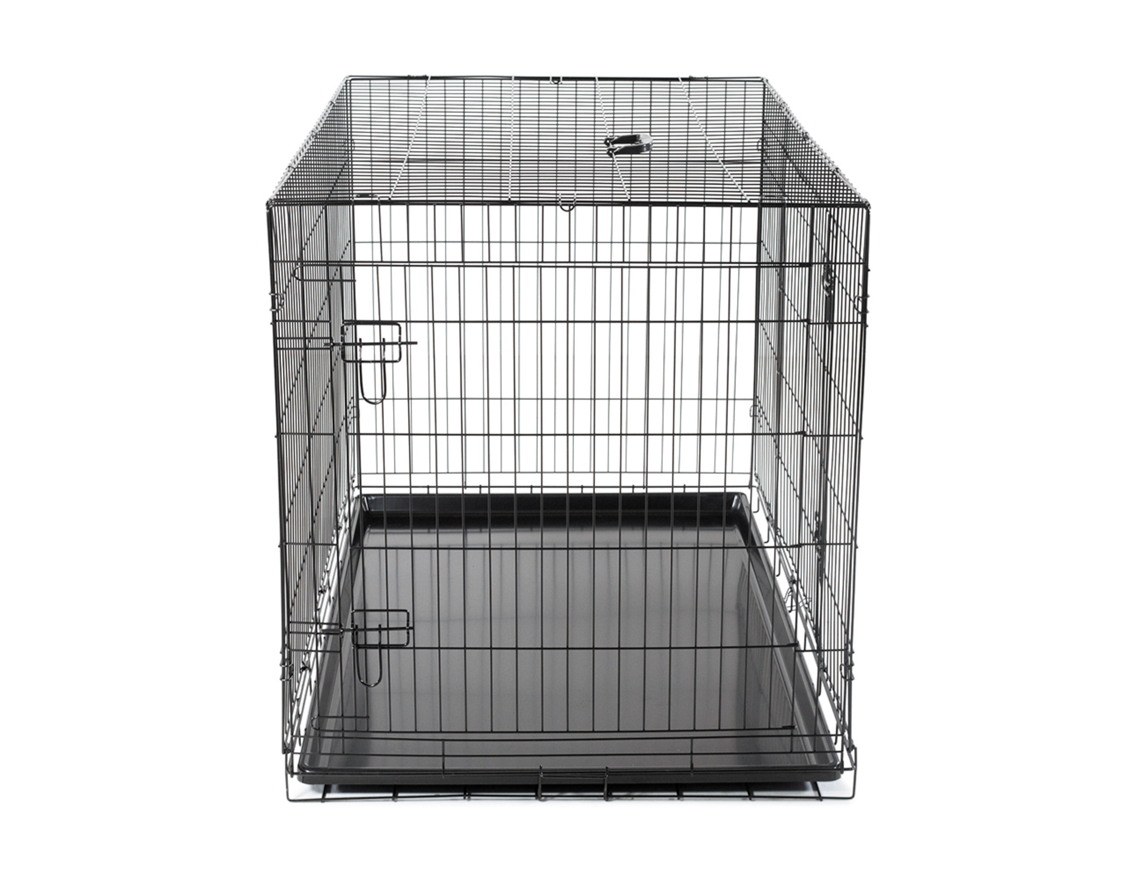 Met de metalen draadkooi kunt u uw hond veilig transporteren. Thuis kan het ook dienen als slaapplek.