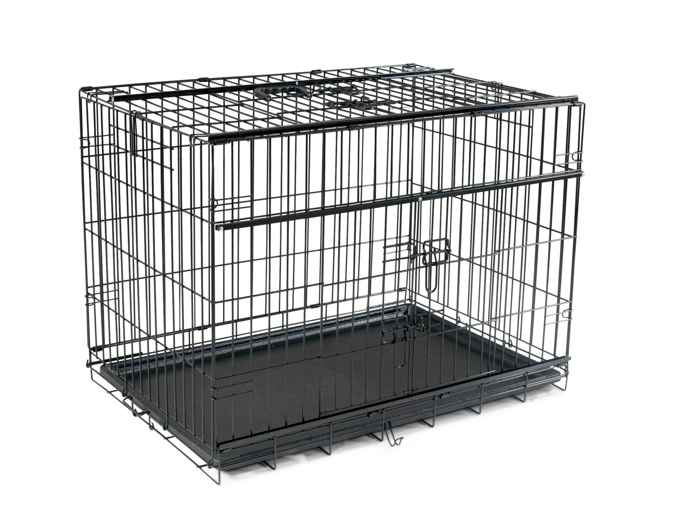 De bovenkant en de zijkant van de Premium kooi zijn beiden uitgerust met een schuifdeur. Het voordeel van een schuifdeur is dat je hond niet per ongeluk de deur kan sluiten en zo niet meer binnen kan. Via de bovenkant heeft u toegang tot de kooi terwijl je hond moeilijk zal kunnen ontsnappen.