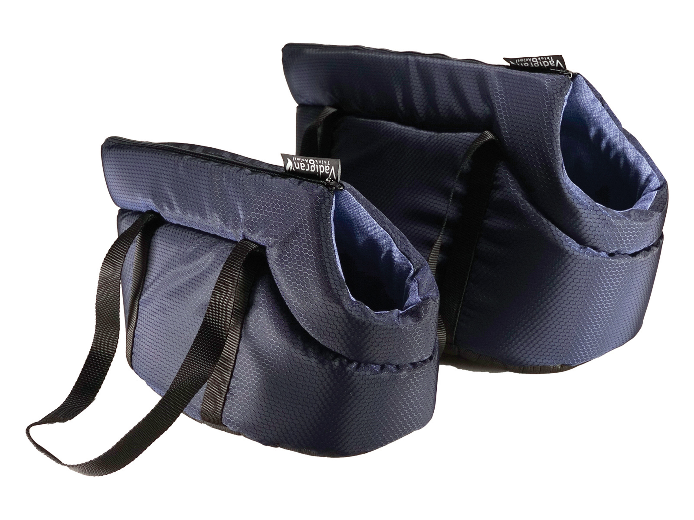 met extra veiligheidsclipje zodat de hond niet uit de mand kan springen