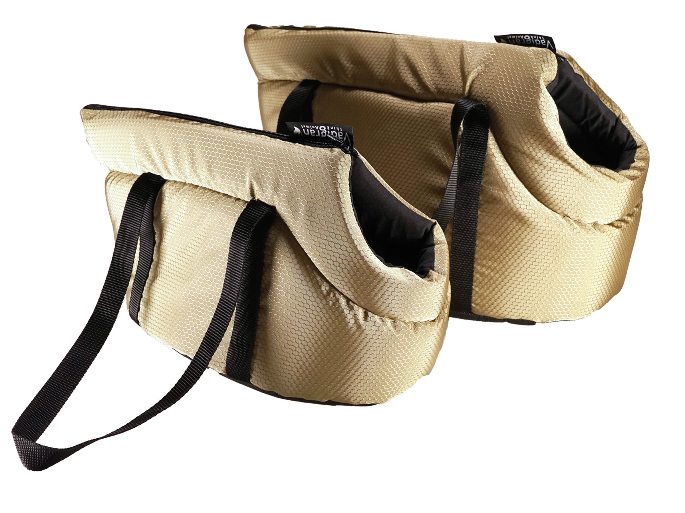 met extra veiligheidsclipje zodat de hond niet uit de mand kan springen