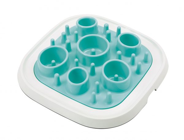 Deze interactieve eetpot zal de hond aanmoedigen om trager te eten en zijn voeding niet naar binnen te schrokken. Dit heeft als voordeel dat het de risico‘s op opgeblazen gevoel, braken en verteringsproblemen helpt tegen te gaan. Het is tevens een leuk tijdverdrijf voor de hond: hij zal ontstressen, is bezig en het geeft hem een aangenaam gevoel van zelfvertrouwen.