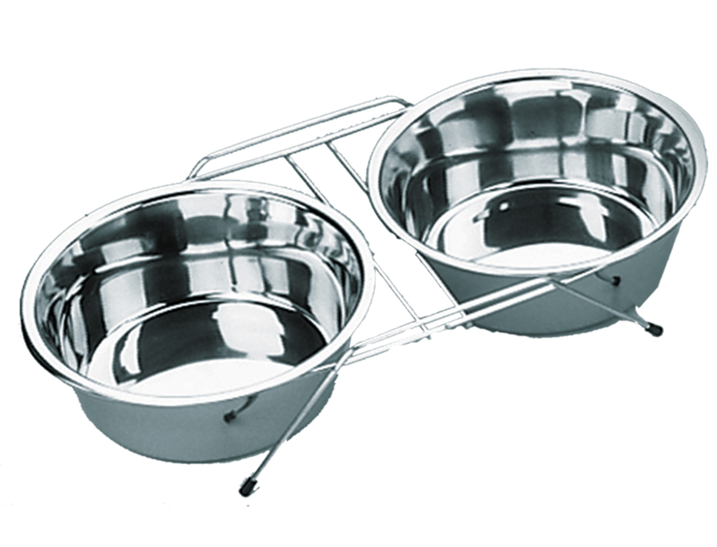 Stabiele voet in inox draad met 2 vervangbare inox eet-/drinkbakken.Dankzij de antislip voetjes blijven de eet- en drinkbak netjes staan en kunnen ze moeilijk omgestoten worden.Stevige eetpot. Verkrijgbaar in verschillende maten.