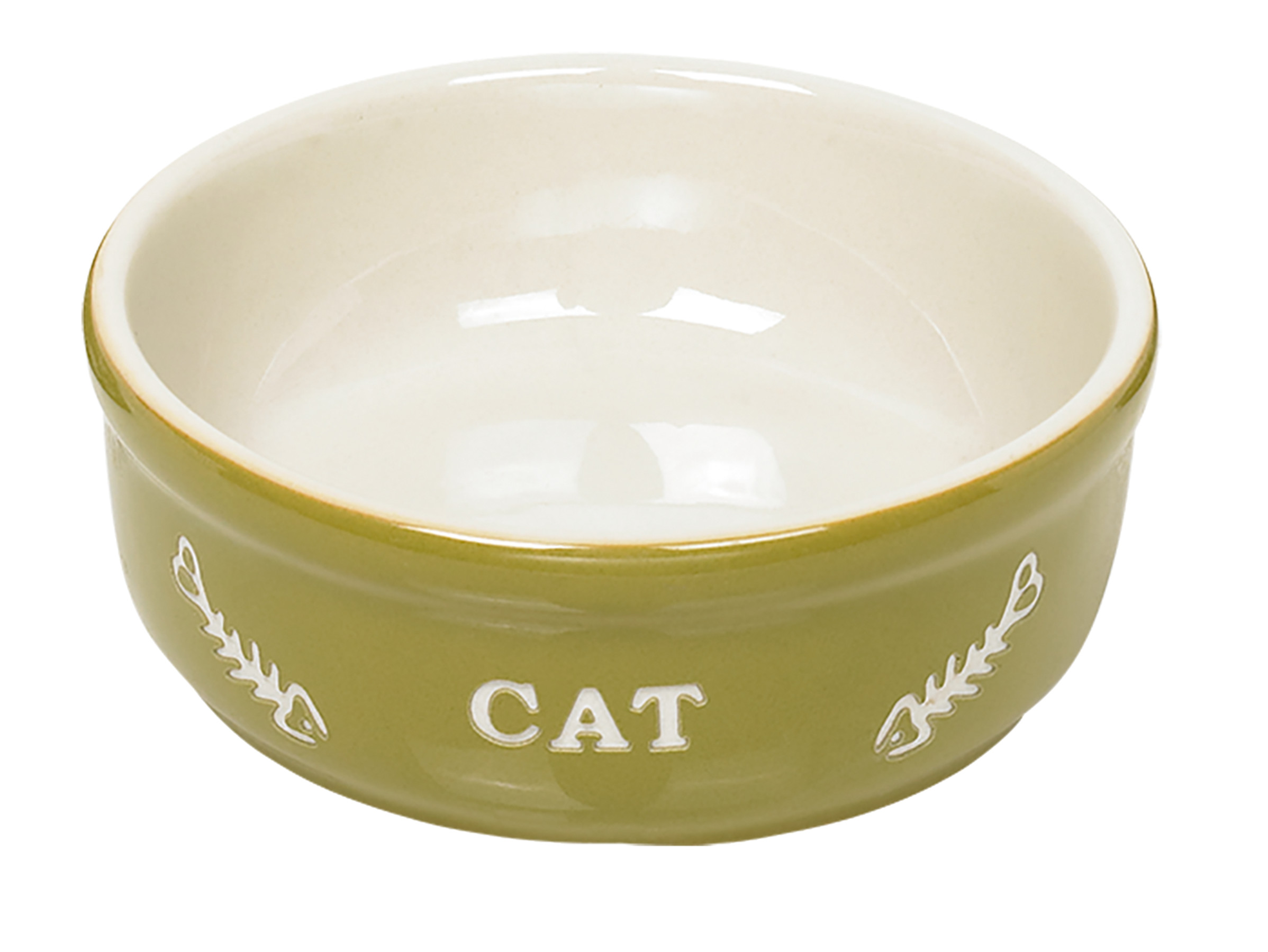 Eetpot kat aardewerk “cat” groen Ø14cm