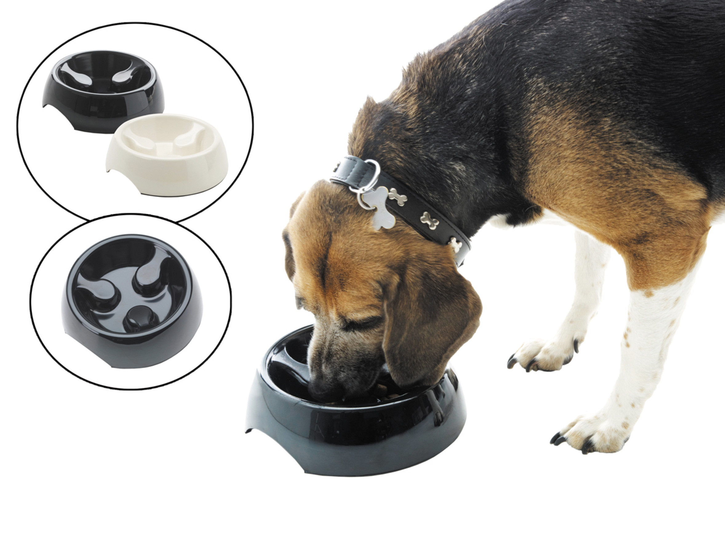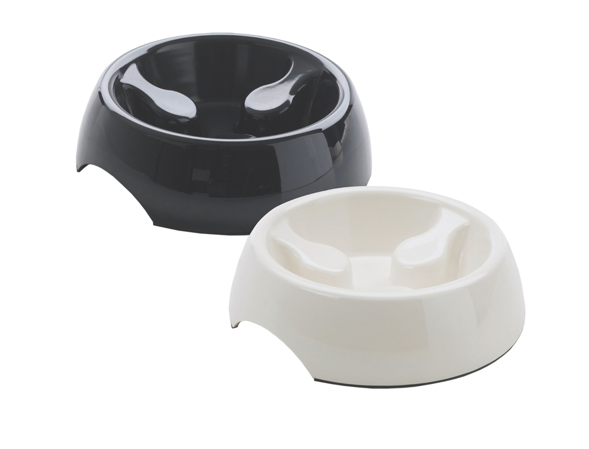 De Slow Down voeder-en drinkbak is speciaal ontwikkeld om uw hond te dwingen trager te eten or drinken. De hond zal meer speeksel produceren en langer kauwen, wat de vertering bevordert.De ingebouwde verhogingen dwingen de hond rond deze obstakels te eten en voorkomen dat je hond zijn voedsel te snel opslokt.Gemaakt uit melamine, een robuste en niet-toxische plastic. Met anti-slip rand, die de eetbak op zijn plaats houdt.Geschikt voor zowel droog als nat voer.