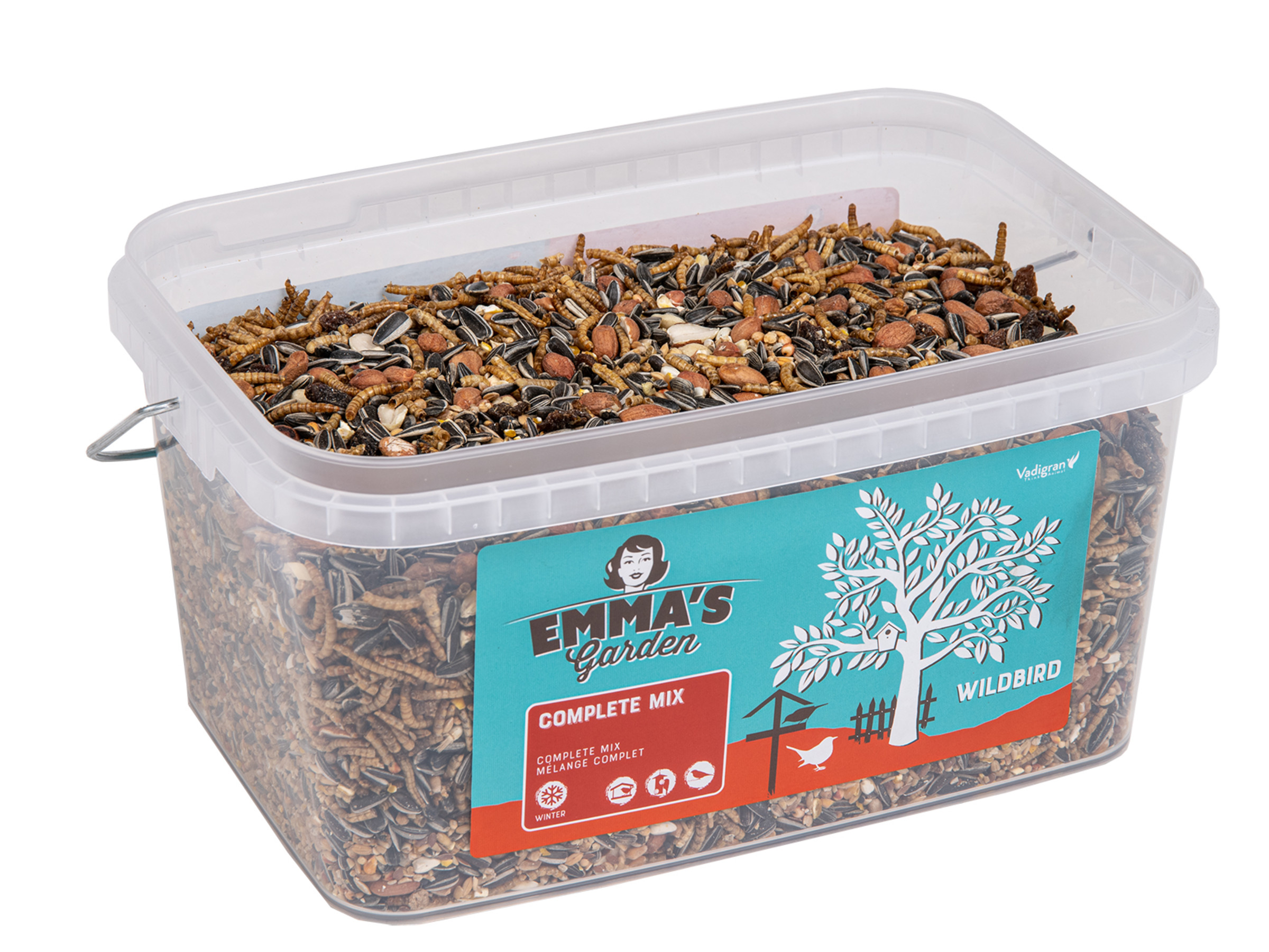 Het strooivoer Complete Mix voor tuinvogels is een wintermix voor heel wat tuinvogels. Deze complete mix bevat veel eiwitten zoals meelwormen en andere hoog kwalitatieve zaden. De pimpelmees , koolmees, roodborstjes , merels, mussen en vinken etc zullen deze winter mix zeker smaken.