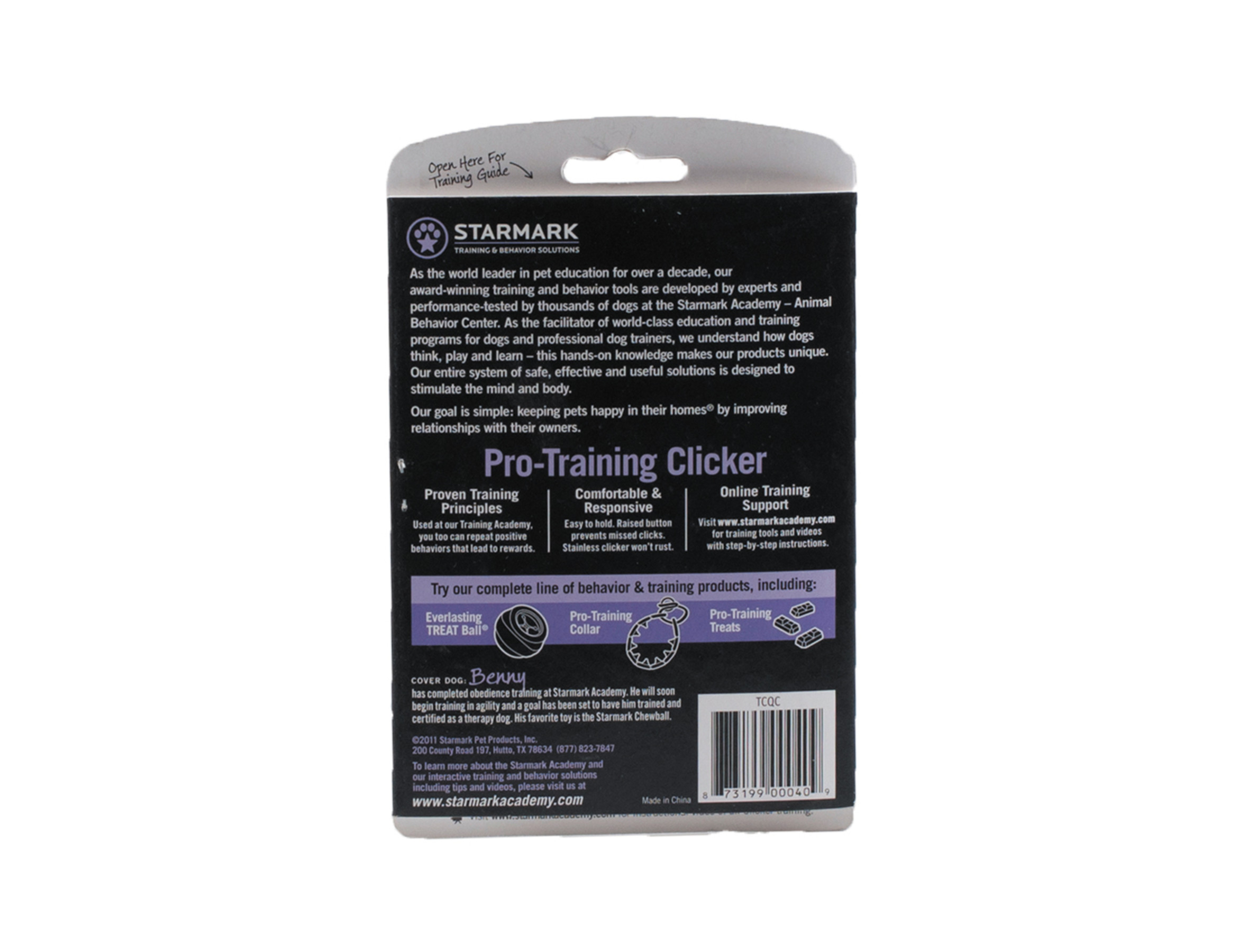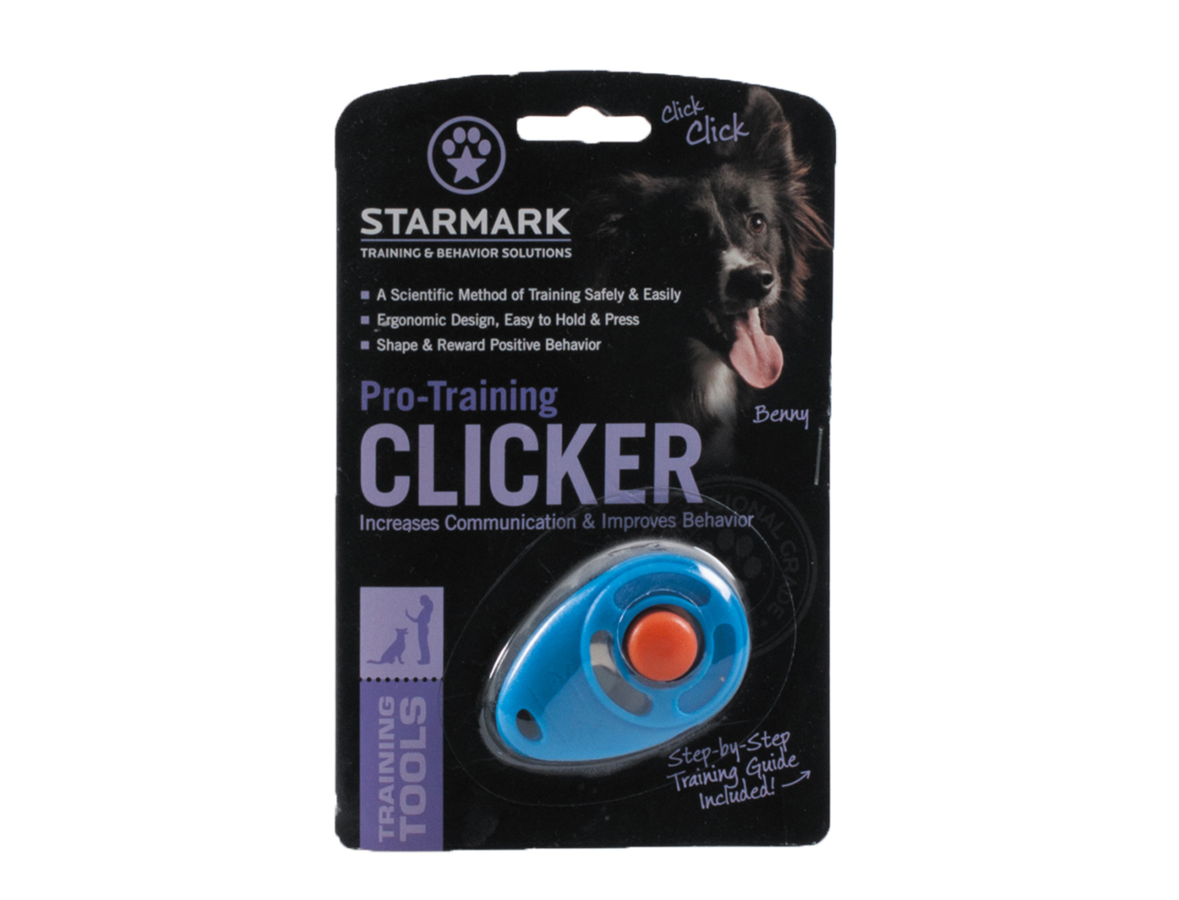 Versnel het leerproces met 50% door het precieze moment waarop goed gedrag zich voordoet te laten merken aan je hond met de Pro-Training Clicker.De wetenschappelijke methode die gebruikt wordt in de Starmark Academy kan u ook thuis toepassen door terugkomend positief gedrag te belonen. Inclusief Stap-voor-stap training gids.Comfortabel in de hand, makkelijk vast te houden. Bevat verhoogde knop om gemiste clicks te voorkomen. Roestvrije clicker.