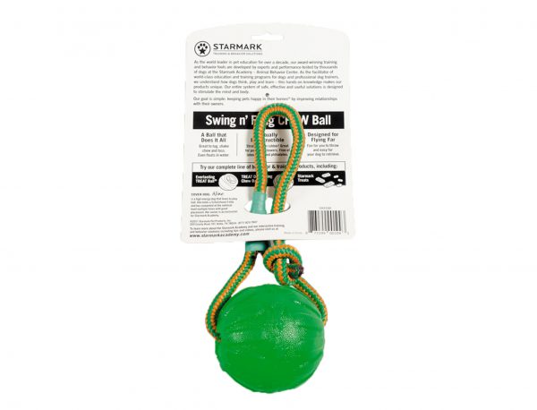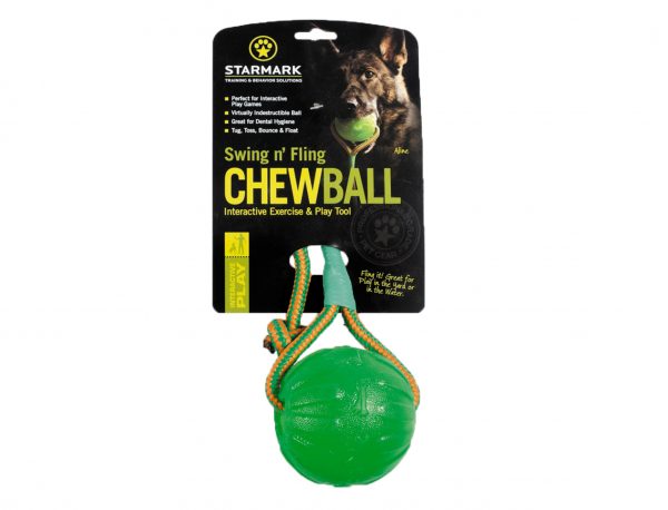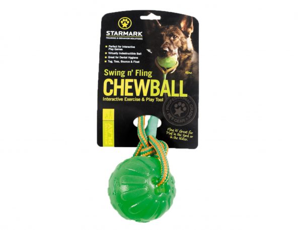 Zacht maar uiterst duurzaam, de “Swing Chew Ball ” is ideaal voor binnen en buiten maar ook voor in het water.Vliegt ver en makkelijk te vangen. Leuk om weg te werpen en te apporteren. Touwtrekken is ook geweldig voor de tanden van uw hond.Dit speelgoed is bestudeerd en ontworpen door professionele trainers. Hun doel is om de hond gelukkig te maken en de relatie met zijn meester te verbeteren.Bal is doordrenkt met vanille. Honden zijn dol op dit aroma! Vrij van latex, vinyl en ftalaten. Uniek en duurzaam design zonder buitenlaag die los zou kunnen komen, gemaakt uit één materiaal, veiliger dan een tennisbal.