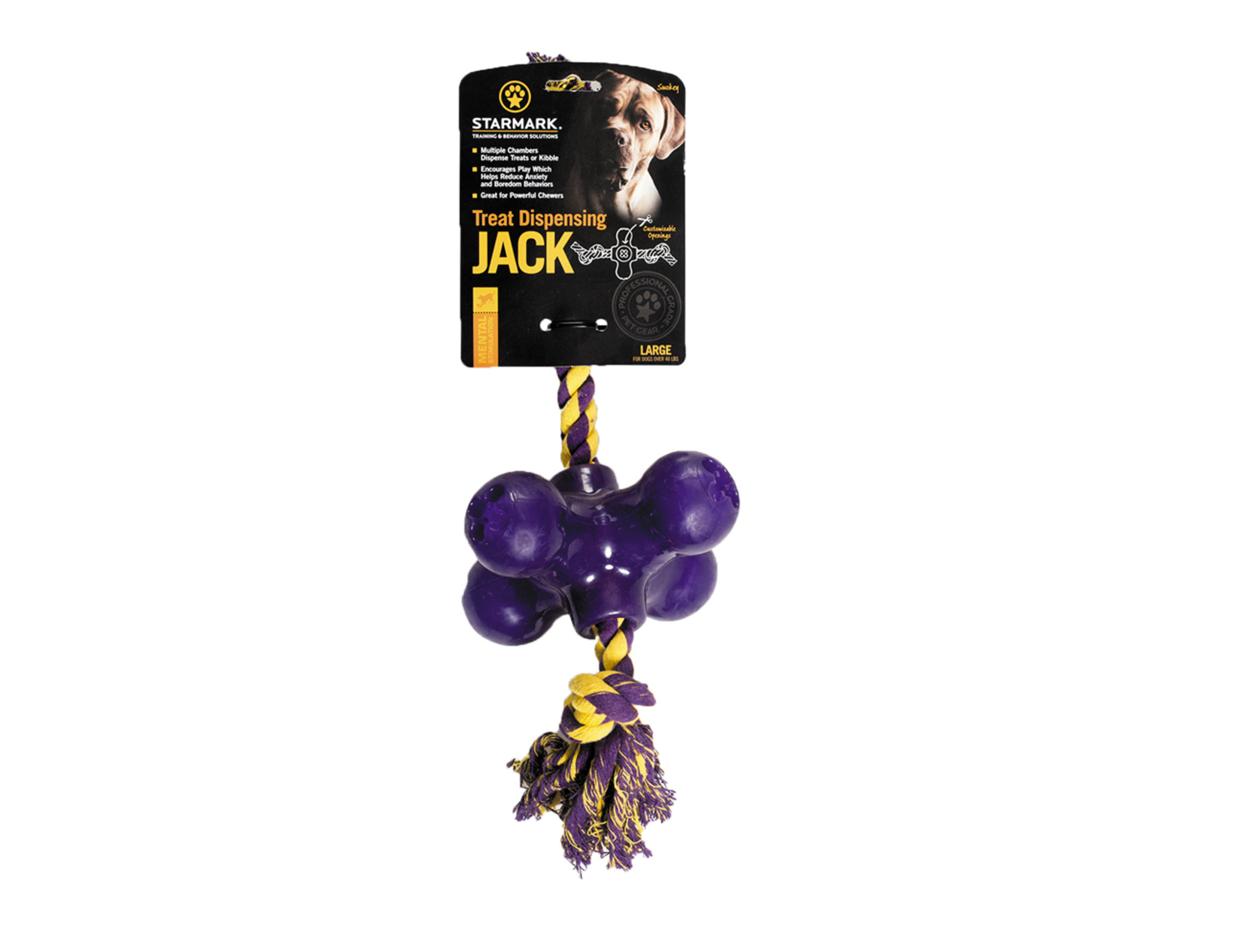 Duurzame Jack dispenser met katoenen touw om te spelen of om te gebruiken met snacks als tussendoortje. “Interactive Treats” (13000) zijn geschikt voor dit product.Speelgoed gemaakt met vrijwel onverwoestbaar materiaal. Sterker dan rubber en zeer geschikt voor sterke kauwers. Vrij van latex, vinyl, en ftalaten.Gemaakt om te trekken, schudden, werpen, zwaaien, kauwen en stuiteren. Gemaakt met zeer zichtbare kleuren voor honden.