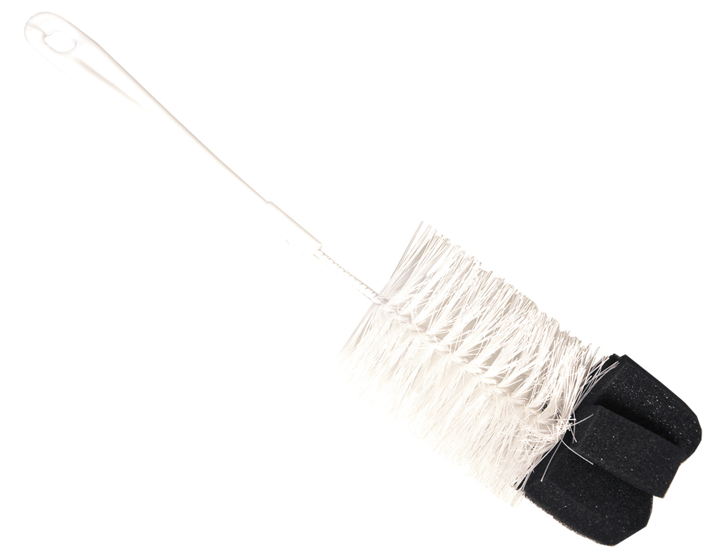 Klassiek metalen model voor de stevigheid, met handvat van kunststof en nylon borstelharen. Verkrijgbaar in verschillende maten afhankelijk van de grootte van de drinkfles.
