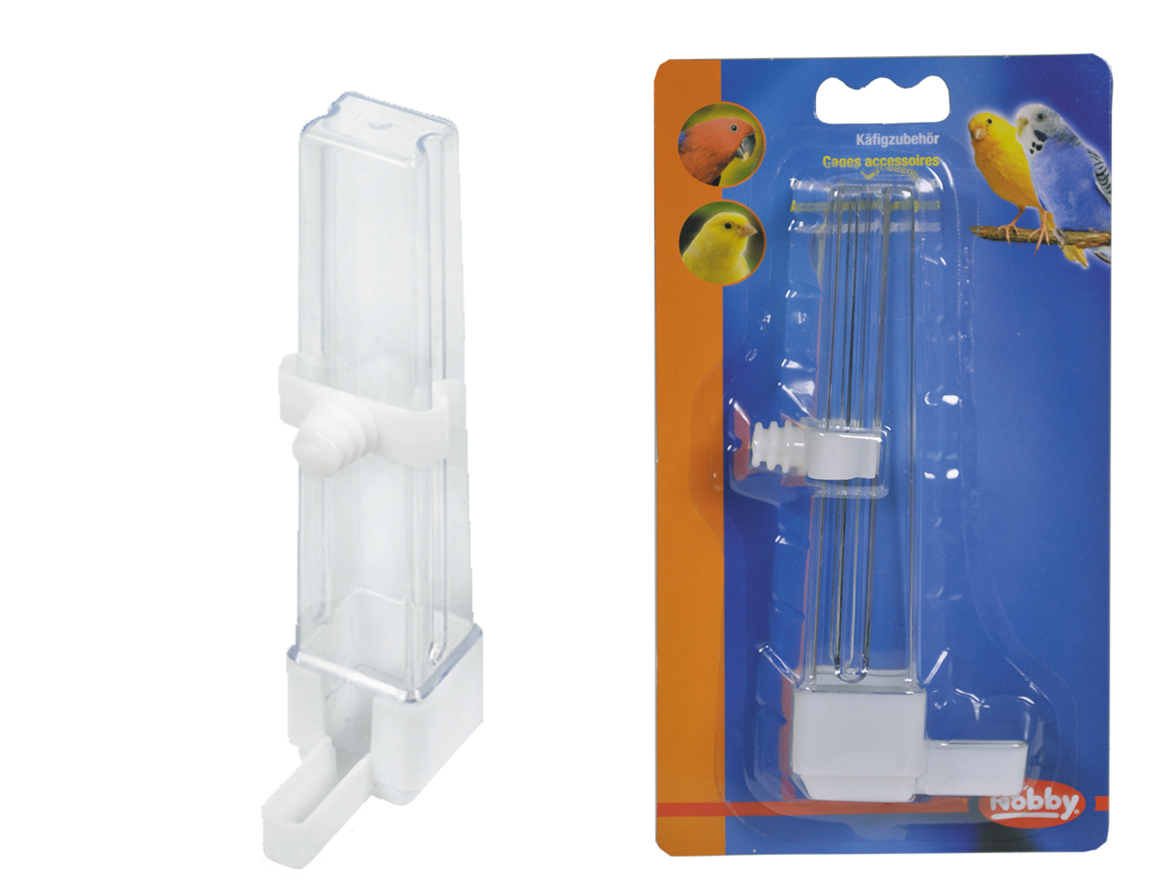 Dankzij de doorzichtige achterkant kan u zien of er nog voldoende water is voor uw vogel.