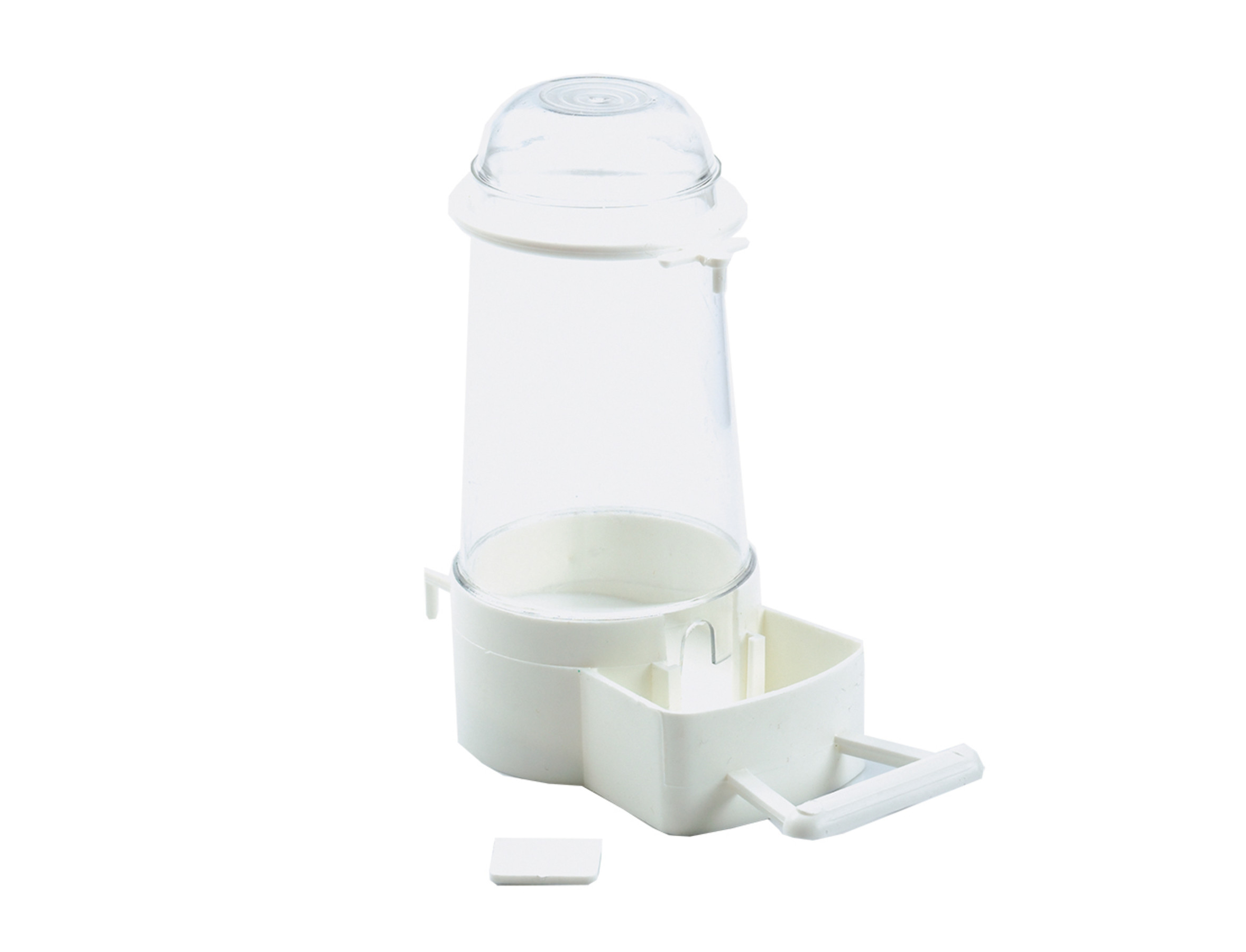 Voeder fontein met een inhoud van 350 ml. Voorzien van een ring om aan de kooi vast te maken.