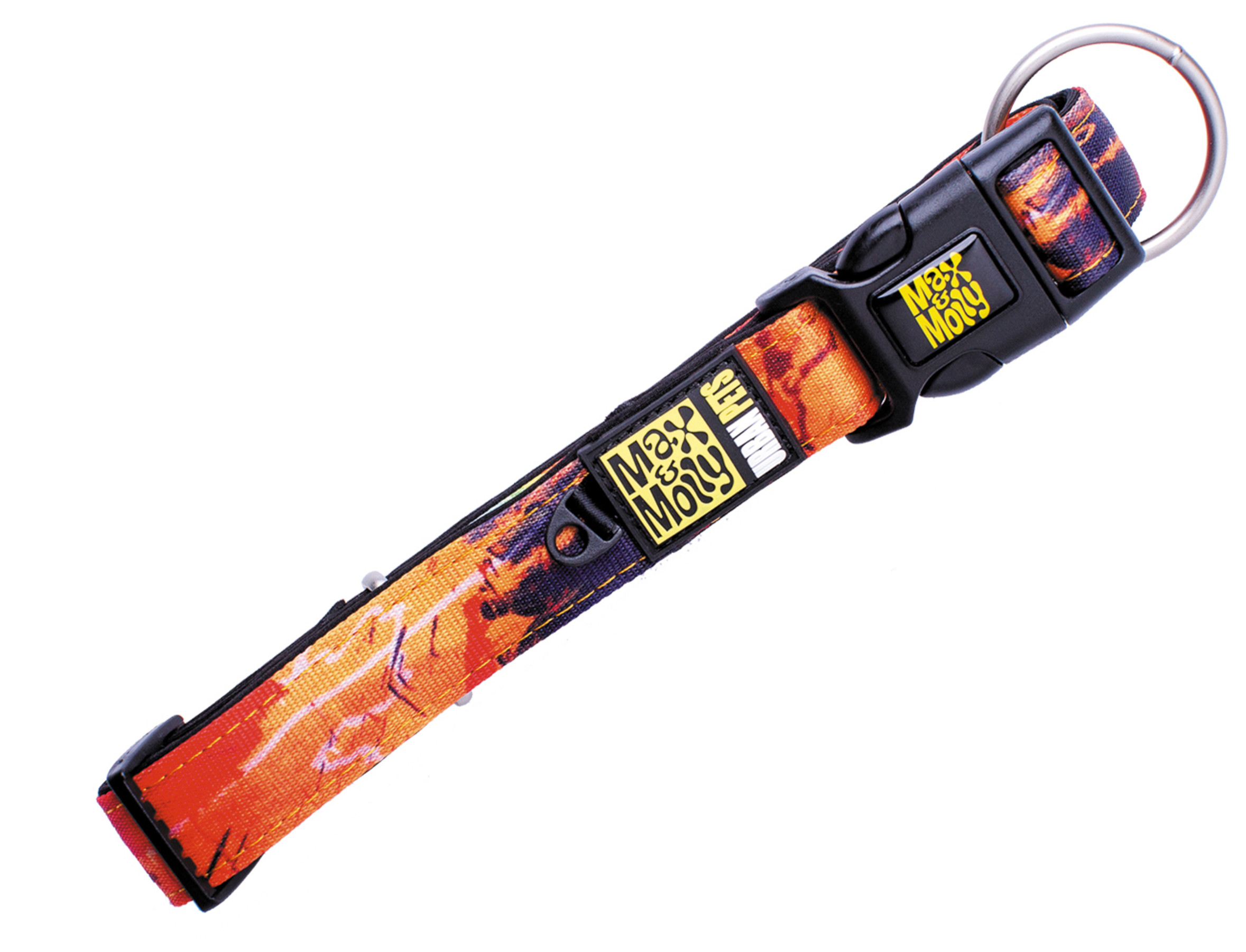 Je hond zal genieten van deze unieke, 3-delige sandwich structuur : een dikke laag ultra sterk polyester aan de buitenkant, een zachte vulling binnenin en een moderne, anti-allergische neoprene laag die snel opdroogt aan de nek van de hond.De veiligheidsring weerhoudt de halsband van weg te glijden wanneer je hem aanbrengt. Alle metalen onderdelen zijn glad gepolijst. Bevat een extra identiteitsring waarmee je de halsband kan personaliseren met je favoriete ID-tag.