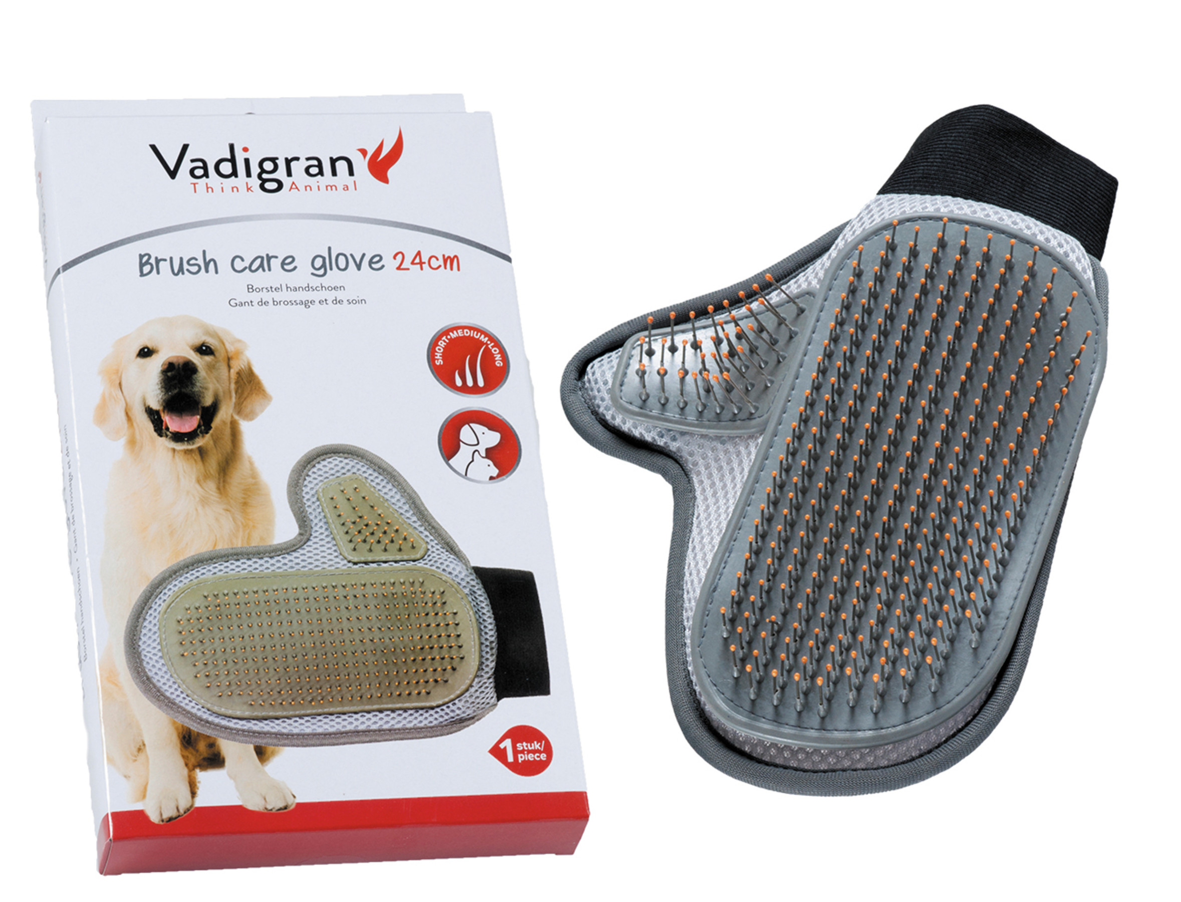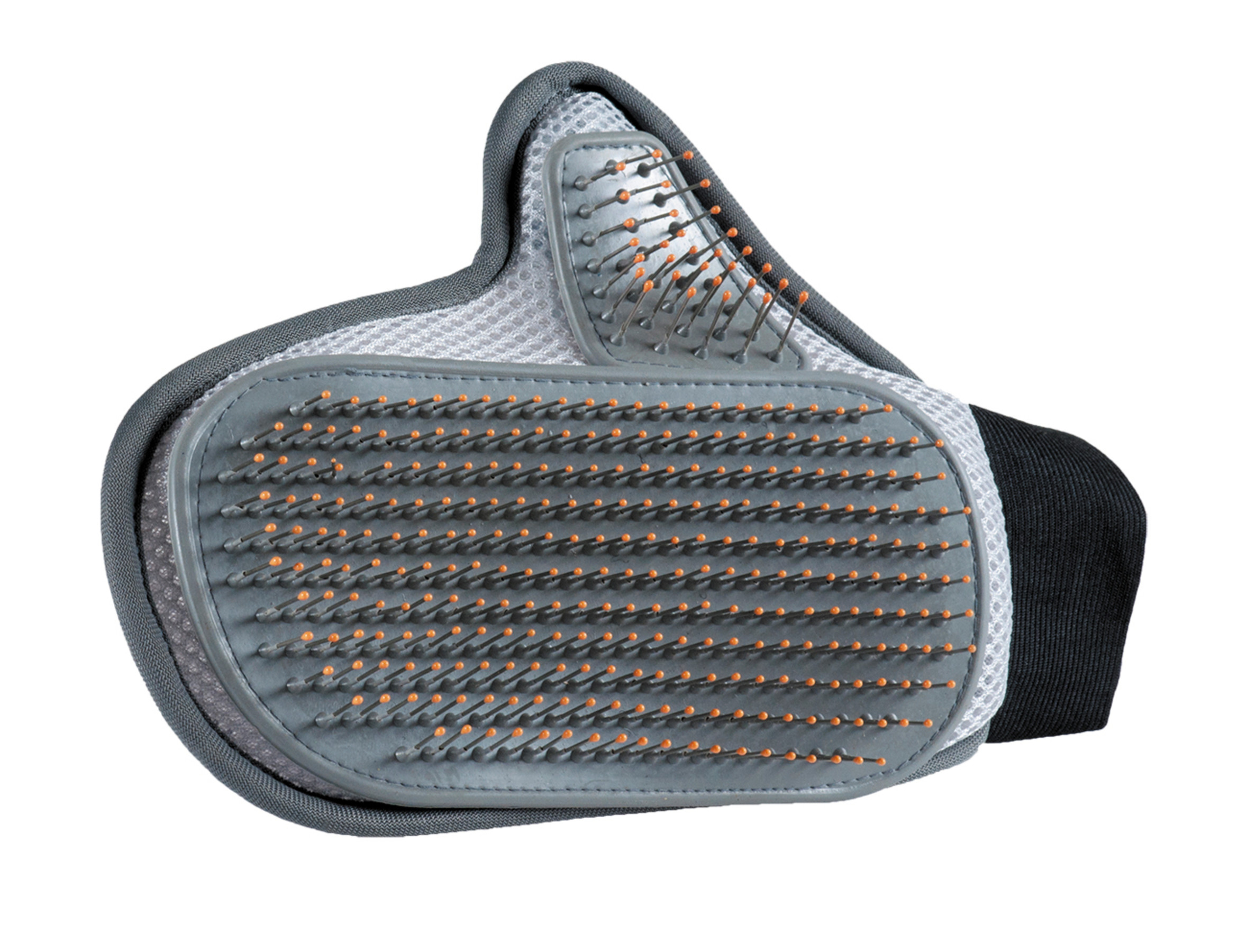 | Kenmerk | Massage – verzorging van dekhaar en ondervacht – bevordert de bloedsomloop – verwijdert overtollige haren en stof – metalen pinnen met noppen – natuurrubber – om vacht losser te maken en te ontklitten – om te ontvilten en uit te dunnen |