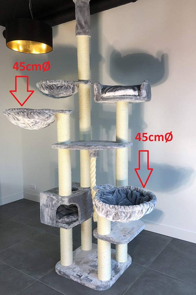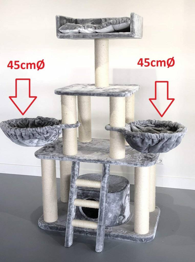 RHRQuality Hangmat de Luxe Light Grey voor uw krabpaal is 45 cmØ en getest op een draaggewicht van 20KG. Het nieuwe model 2018 is een combinatie tussen een kussen en een hangmat.