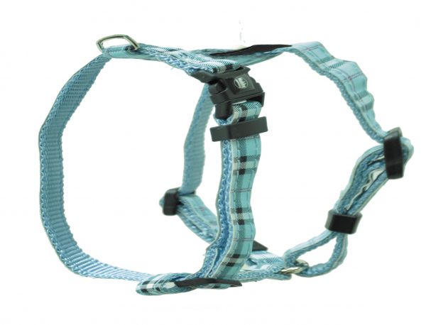 Harnas hond nylon Schotse Ruit blauw 10mmx20-35cm