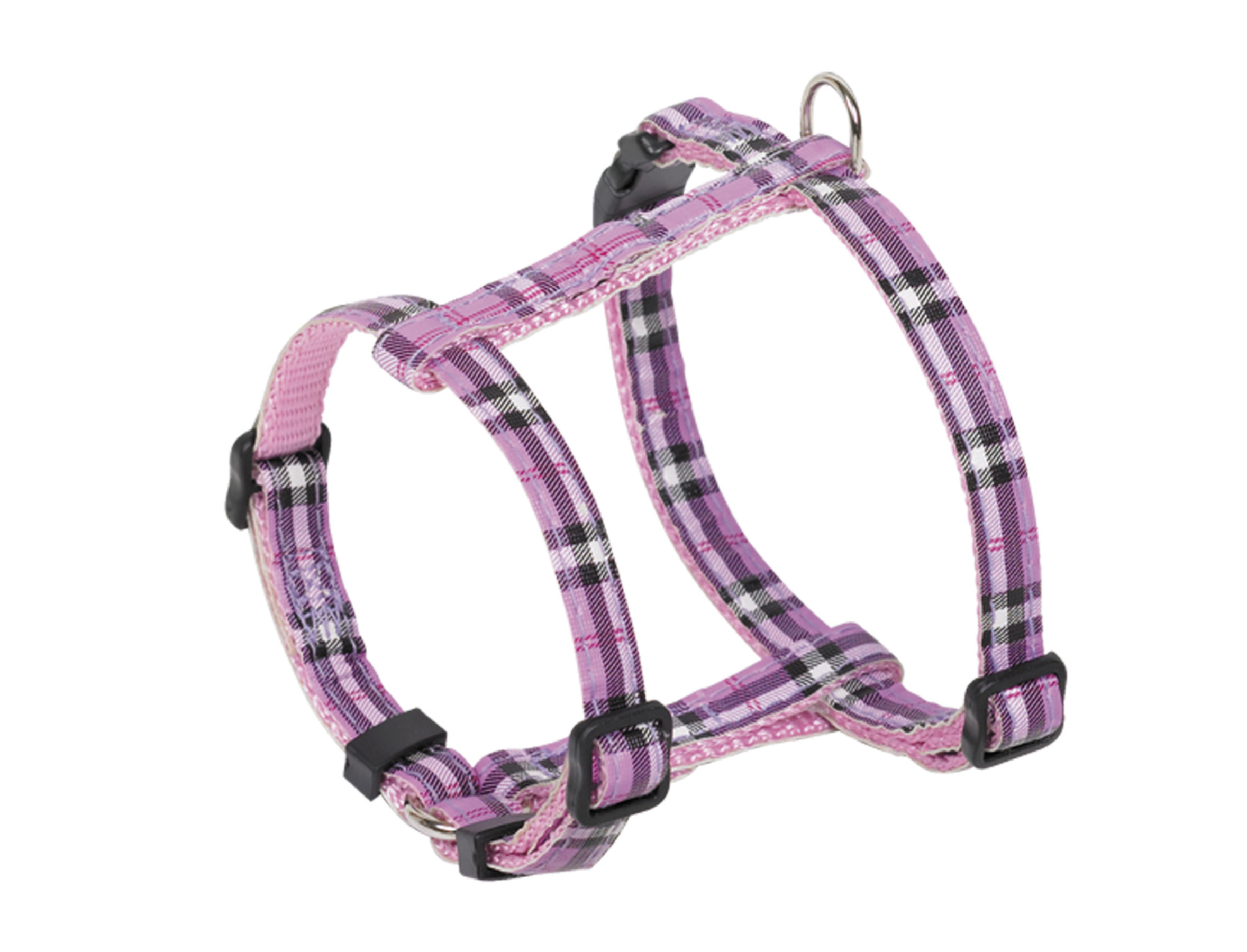 Harnas hond nylon Schotse Ruit paars 10mmx20-35cm