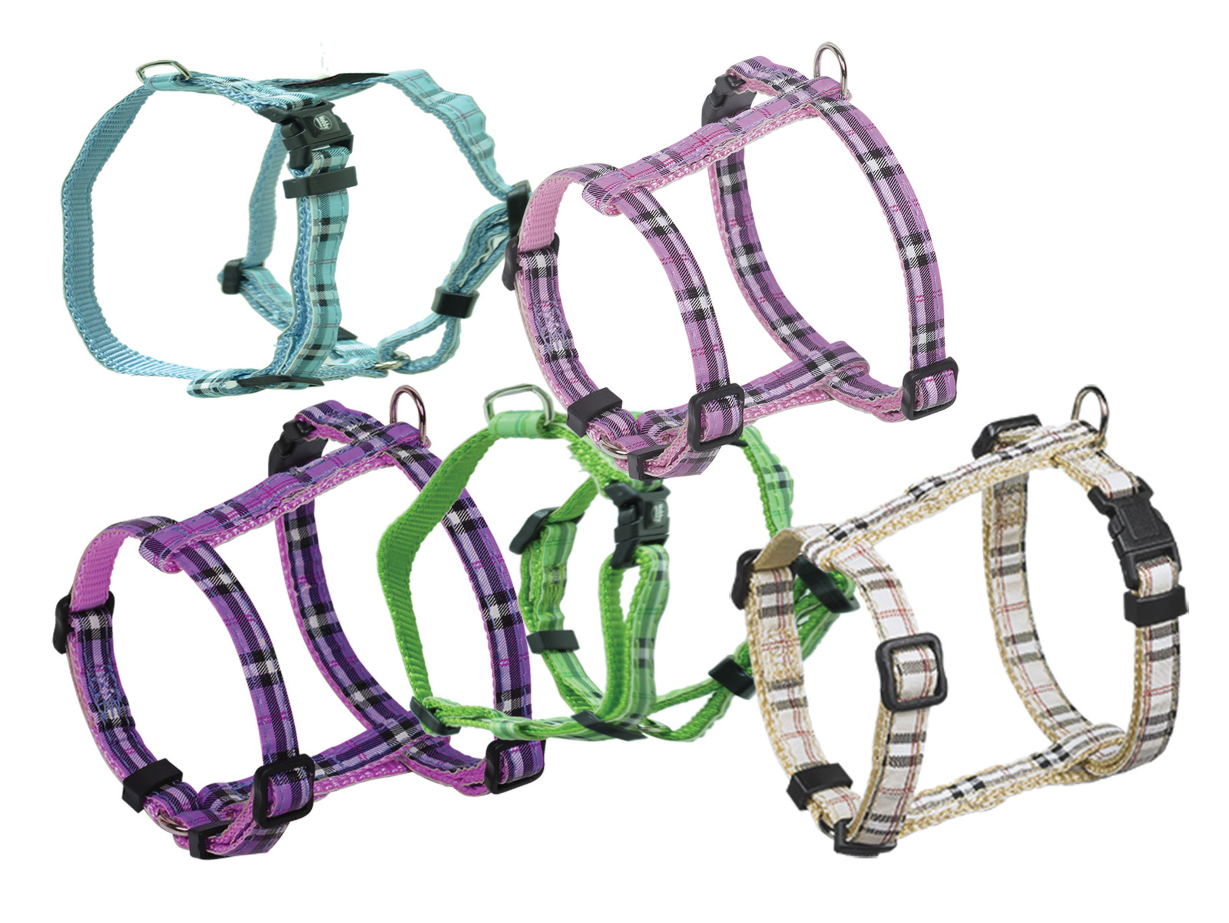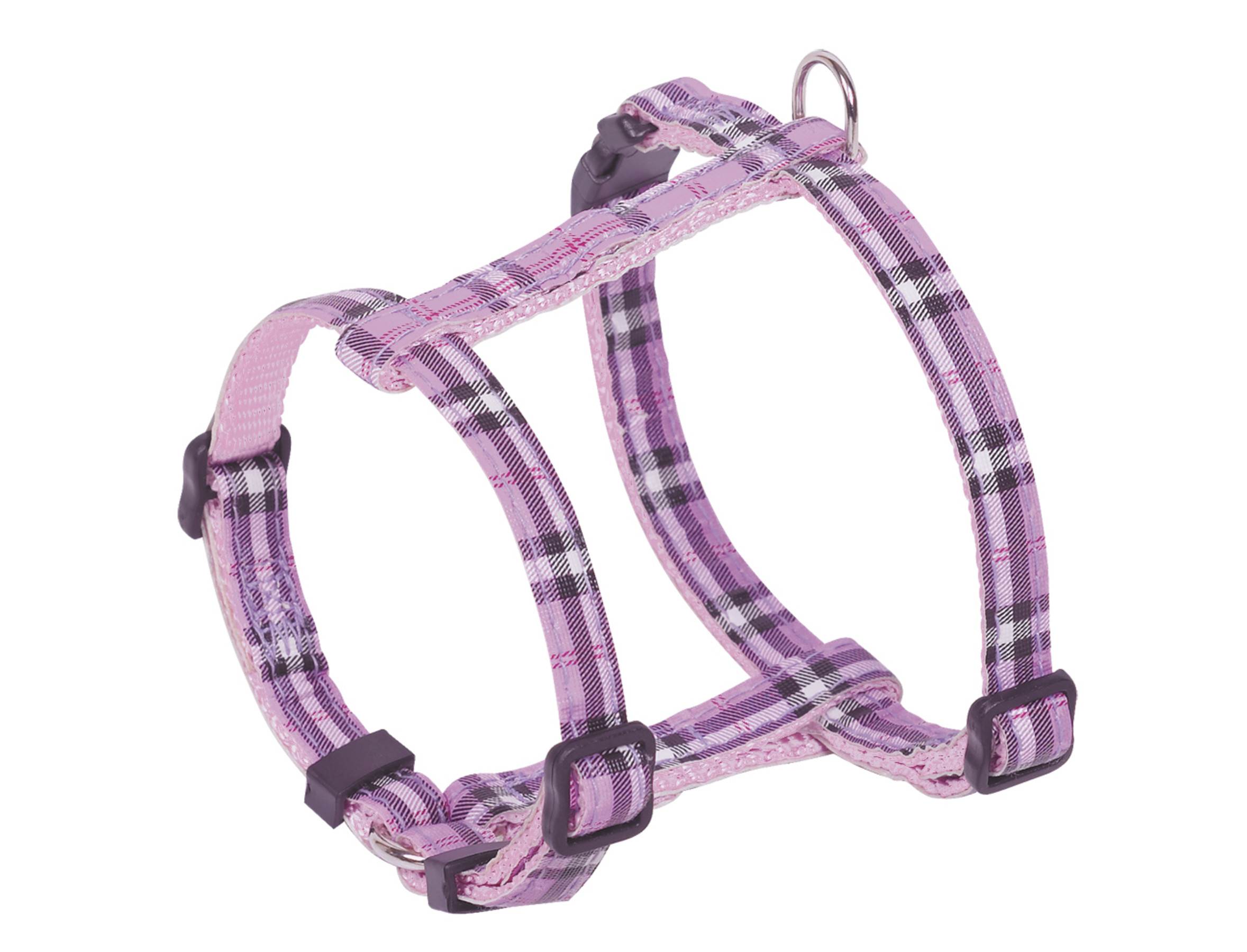 Harnas hond nylon Schotse Ruit roze 10mmx20-35cm