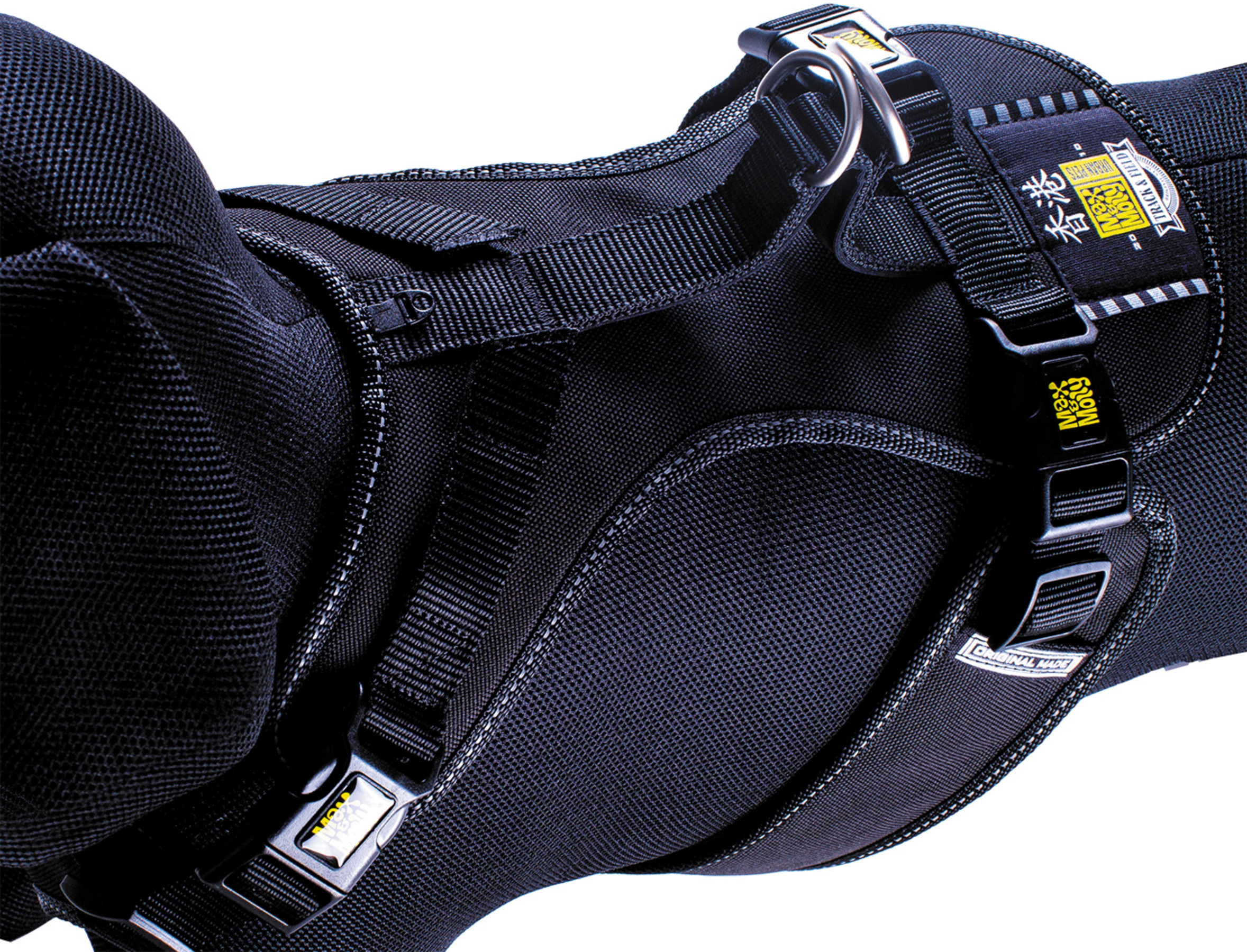 Bent u op zoek naar een bijzonder stevig sport harnas? Onze matrix harnas van de X-trail serie combineert maximale veiligheid met het hoogste comfort en een sportieve look.Controle behouden is van essentieel belang voor de veiligheid en ontspanning voor de hond en eigenaar. De X-trail series zijn sterker en robuuster gemaakt dan klassieke hondenharnassen.Gemakkelijk aan te doen door de aanpasbare hoofd openingen aan de zijkanten. Dit betekent dat het harnas perfect kan aangepast worden aan de lichaamsgrootte van de hond zonder het harnas over het hoofd te moeten trekken.Extra comfortabel voor de hond door de unieke sandwichstructuur= een dikke laag van sterk polyester aan de buitenkant, zachte vulling binnenin voor meer grip en een makkelijk droogbare binnenkant van neopreen.Het handvat met goede grip is handig om je hond te helpen. De binnenste laag van het harnas is goed gevuld en is zeer zacht voor de huid van uw hond.Alle metalen onderdelen zijn prachtig gepolijst en het harnas is aanpasbaar aan elke zijde voor de perfecte pasvorm.