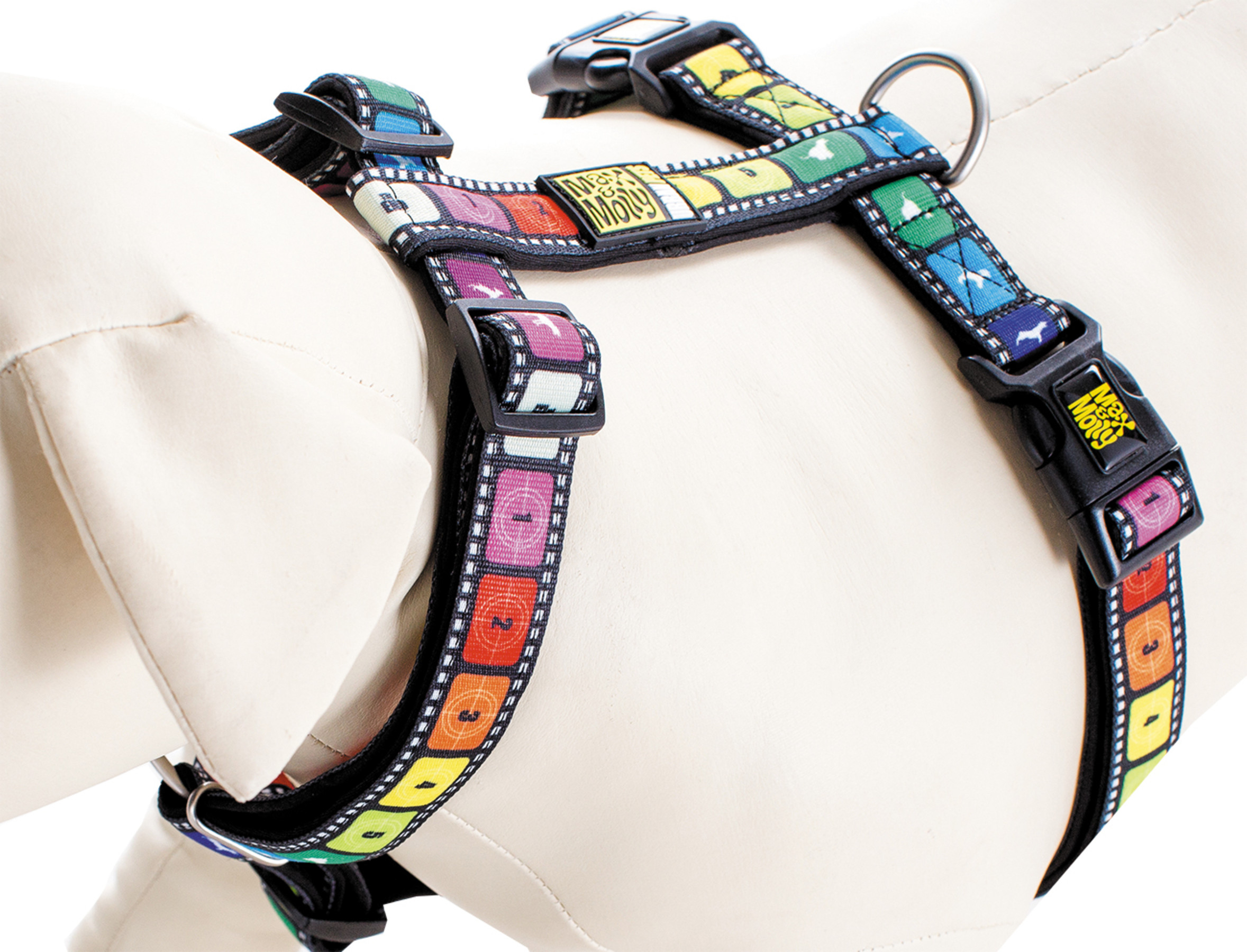 Het is van essentieel belang dat zowel u als uw hond welbehagen en veiligheid ondervinden tijdens de wandeling. Dit harnas biedt de perfecte oplossing. De H-vorm is comfortabel, ondersteunend en eenvoudig aan te passen.Extreem comfortabel dankzij deze 3-delige unieke sandwichstructuur. Een dikke, sterke polysterlaag bovenaan, een zachte vulling binnenin voor meer grip en een snel drogende, anit-allergische neoprene binnenkant.Dit harnas zorgt er ook voor dat de leiband niet verstrikt geraakt tussen de poten. Zeer comfortabel voor de hond omdat hij de kwetsbare nek van uw hond spaart. Uw hond zal in een mum van tijd wennen aan het harnas.Alle metalen delen zijn mooi gepolijst en je kan de 4 zijden aanpassen voor de perfecte pasvorm. Bovendien ziet het er enorm schattig uit.