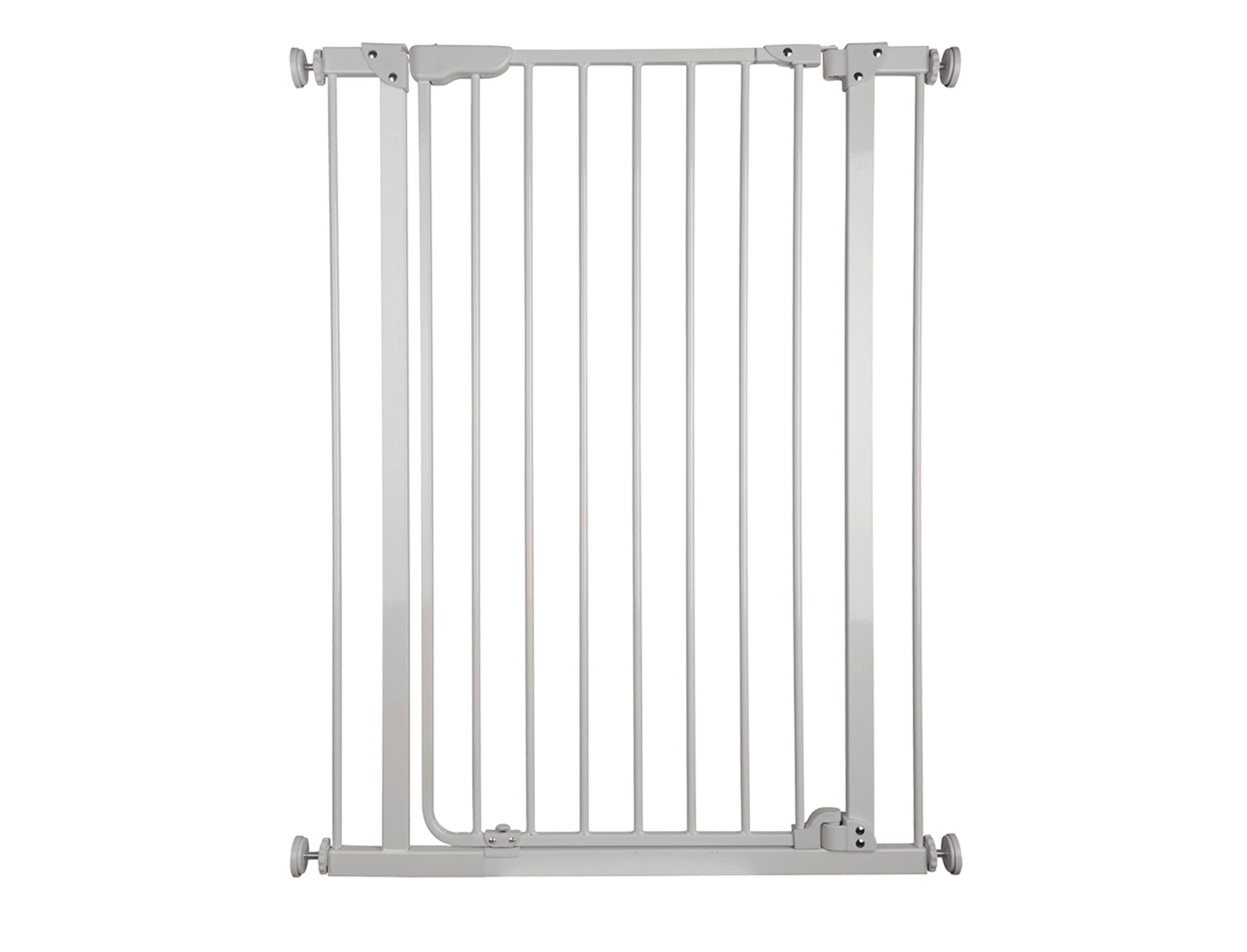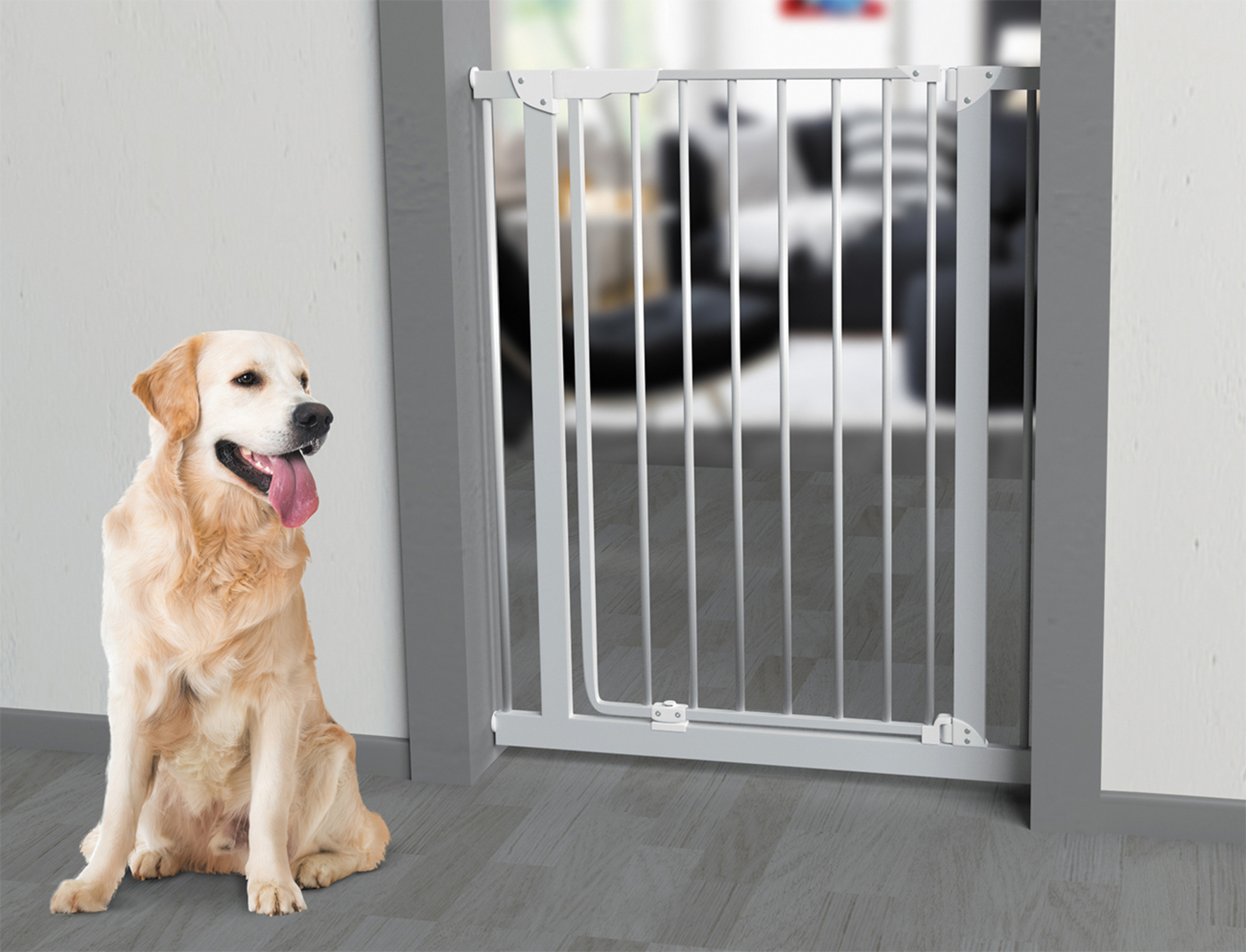 Het witte metalen hek Bob is speciaal ontworpen voor de veiligheid van uw huisdier en uw interieur. Het is ideaal om de toegang tot elke kamer in uw huis te beperken waar de hond niet mag komen.Het is aanpasbaar aan alle deuropeningen dankzij de verlengstuk (item n° 13171) die apart worden verkocht.Zeer eenvoudig te installeren en hecht zich vast door middel van spanning. Er moet niet in de muur geboord worden. (min 73 cm/max 84 cm)