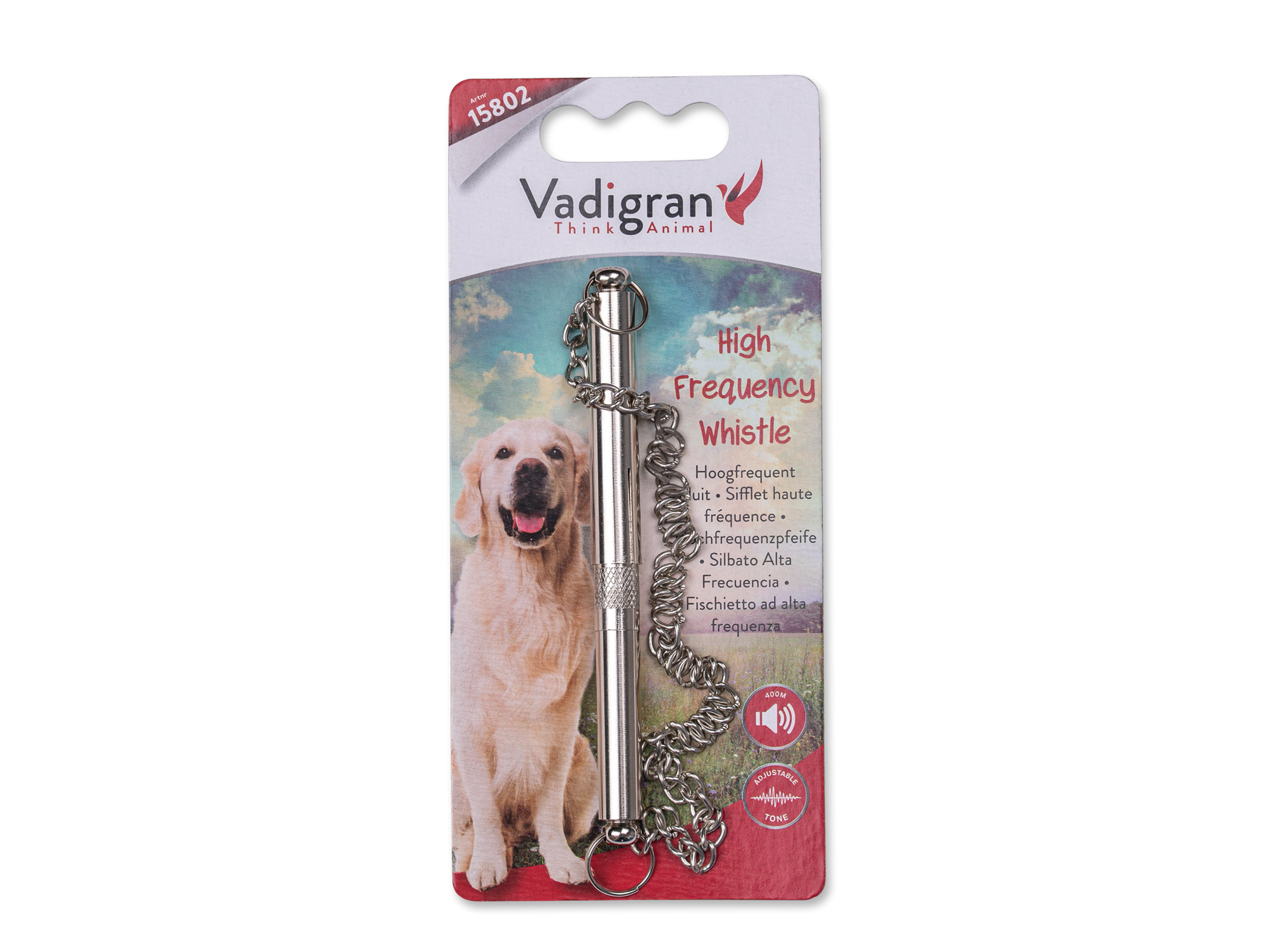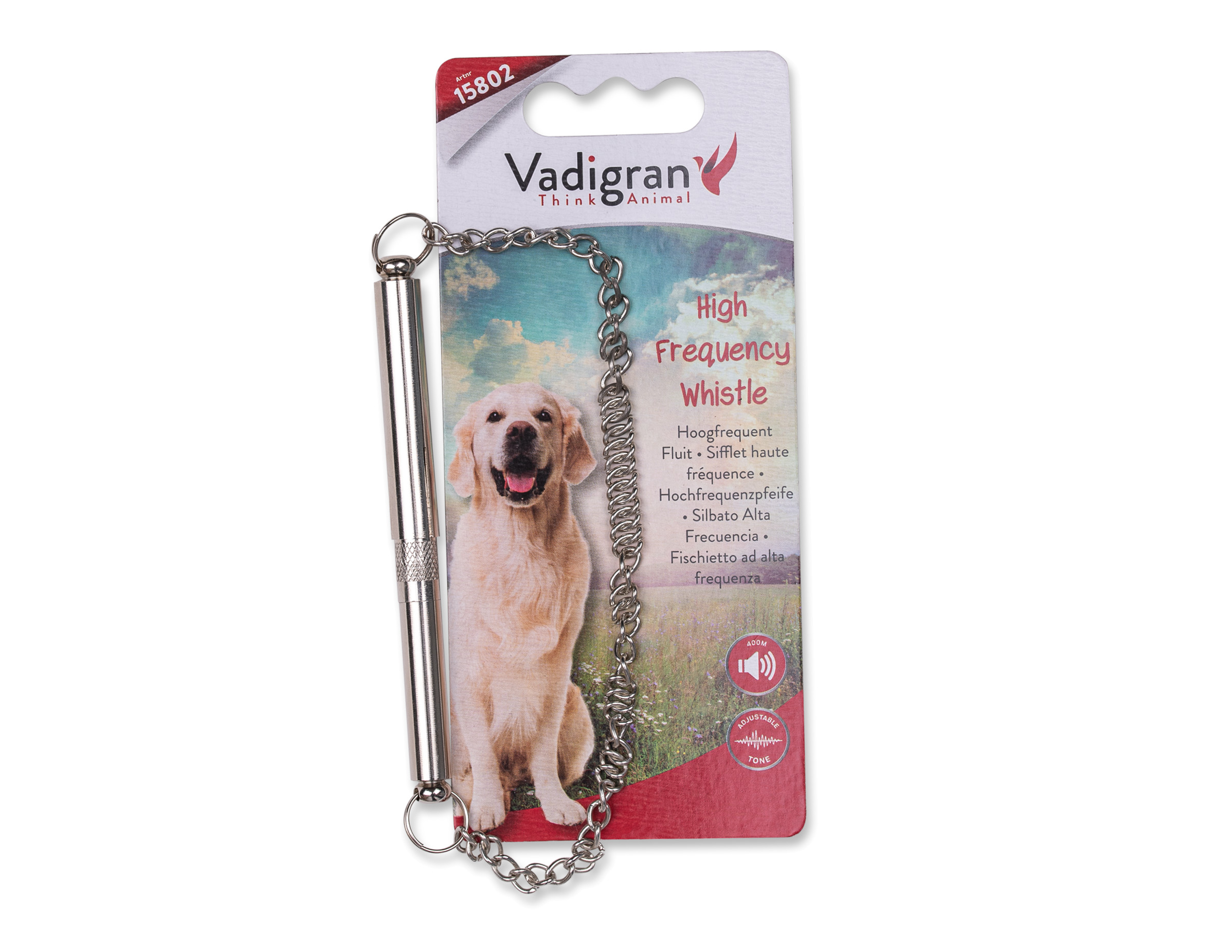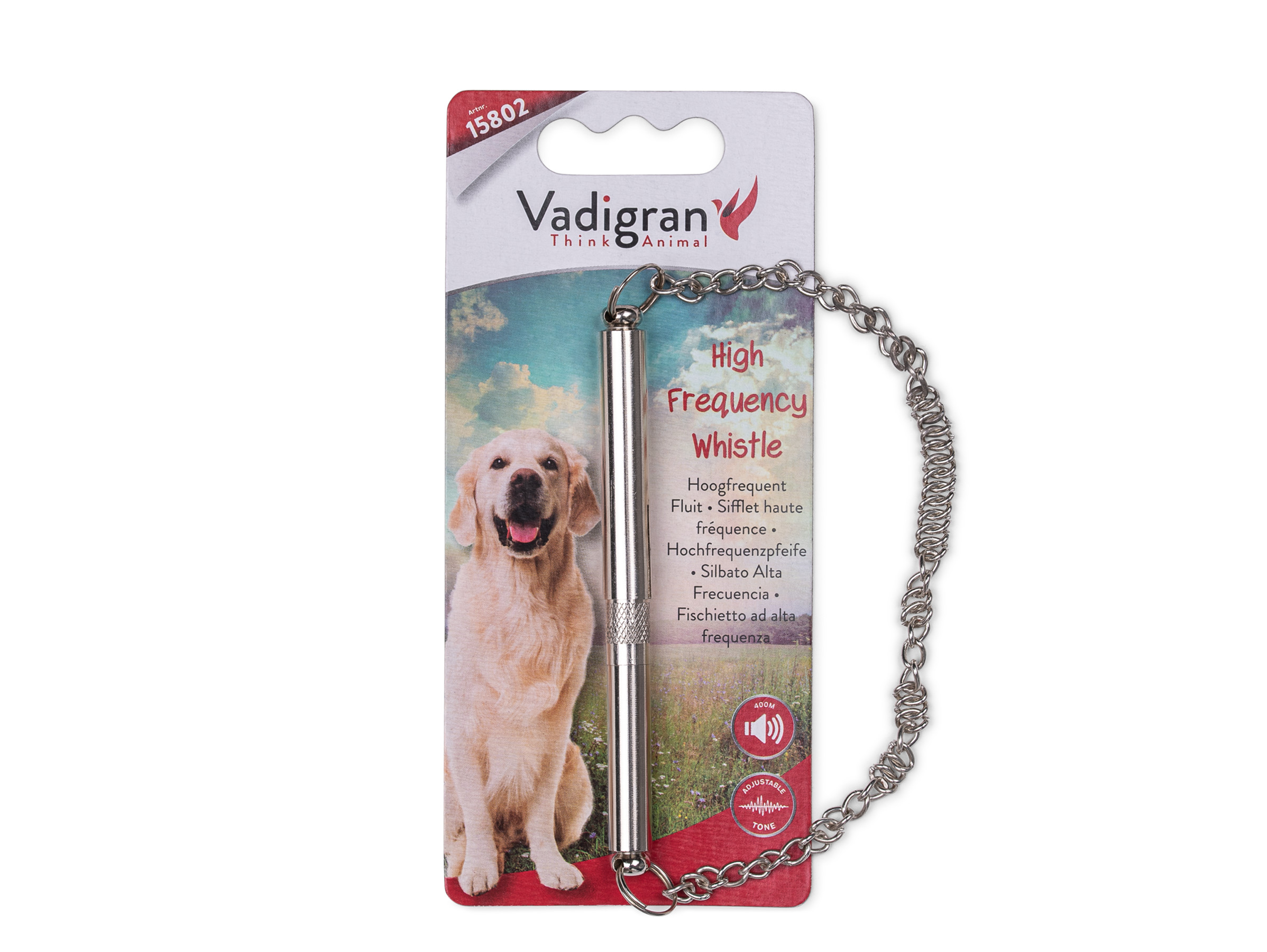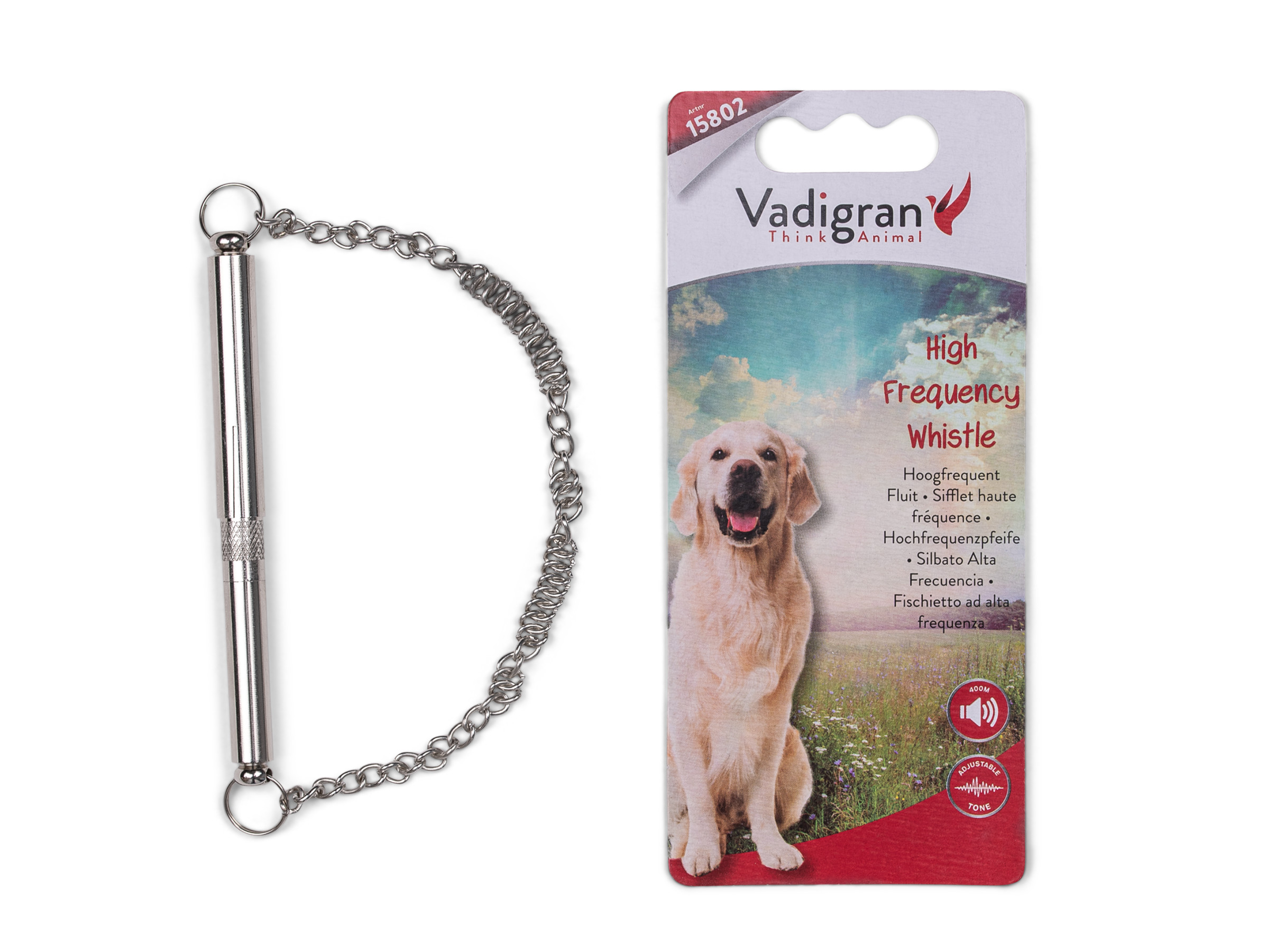 – Een hondenfluit is erg handig als je je hond op een wat grotere afstand commando’s wilt geven