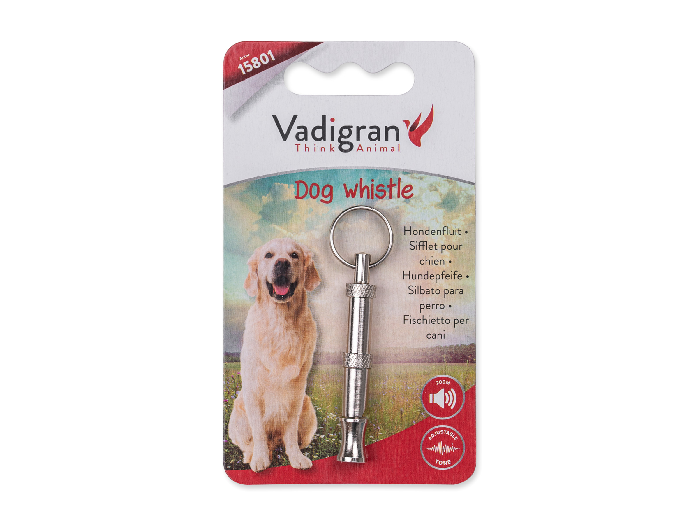 – Een hondenfluit is erg handig als je je hond op een wat grotere afstand commando’s wilt geven