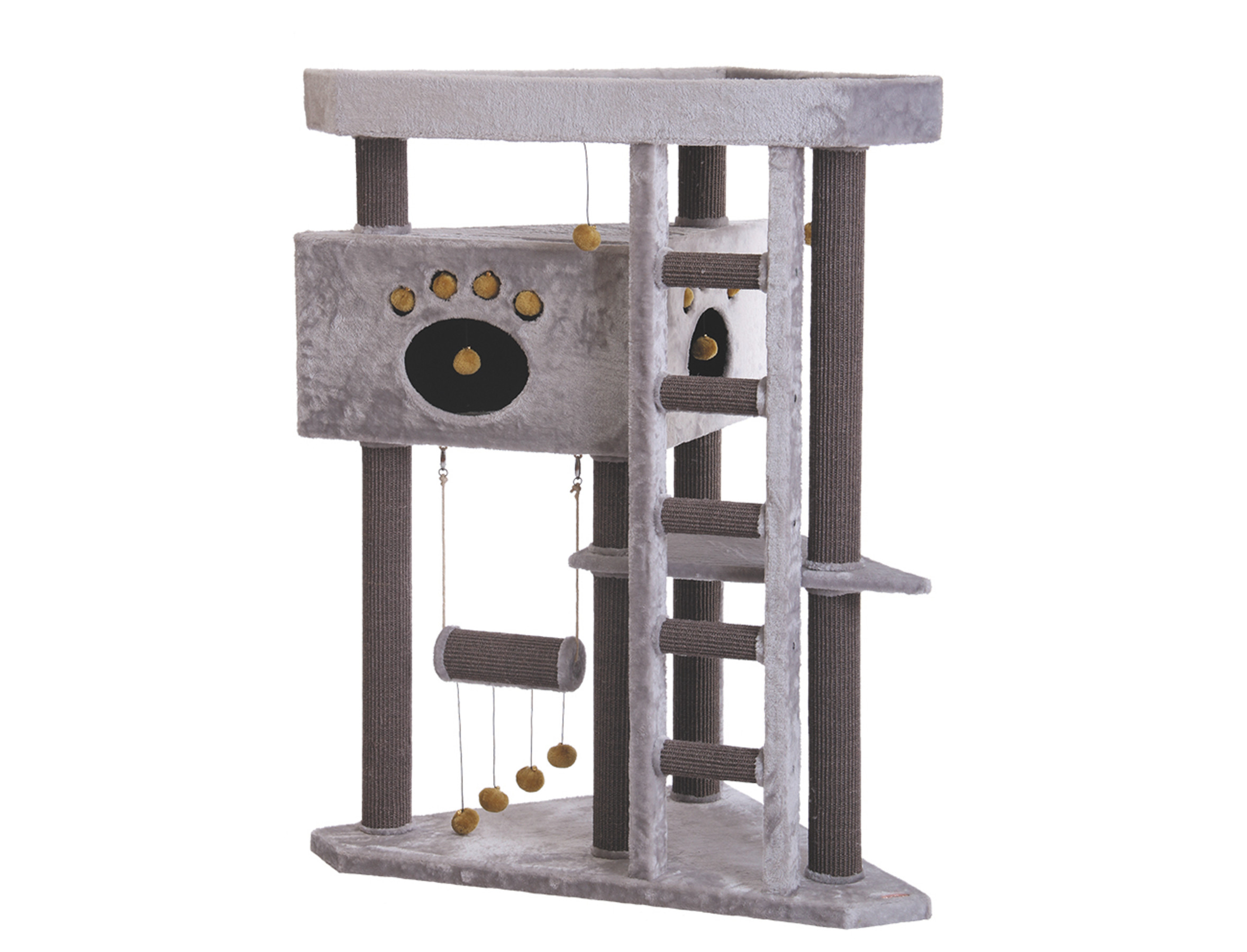 Zeer stabiel model, handig om in een hoek te plaatsen, met een doordachte design die de kat stimuleert om te spelen.