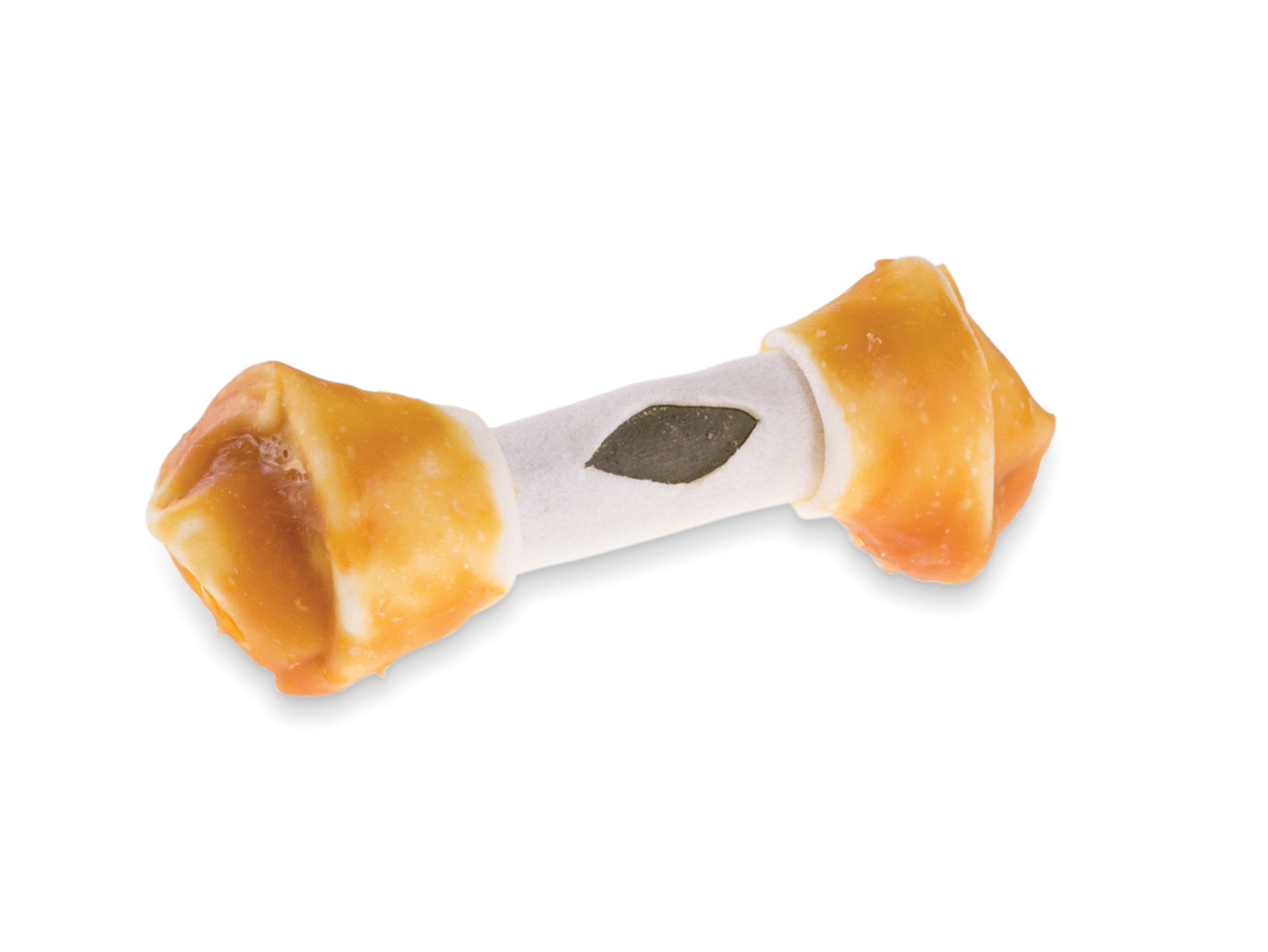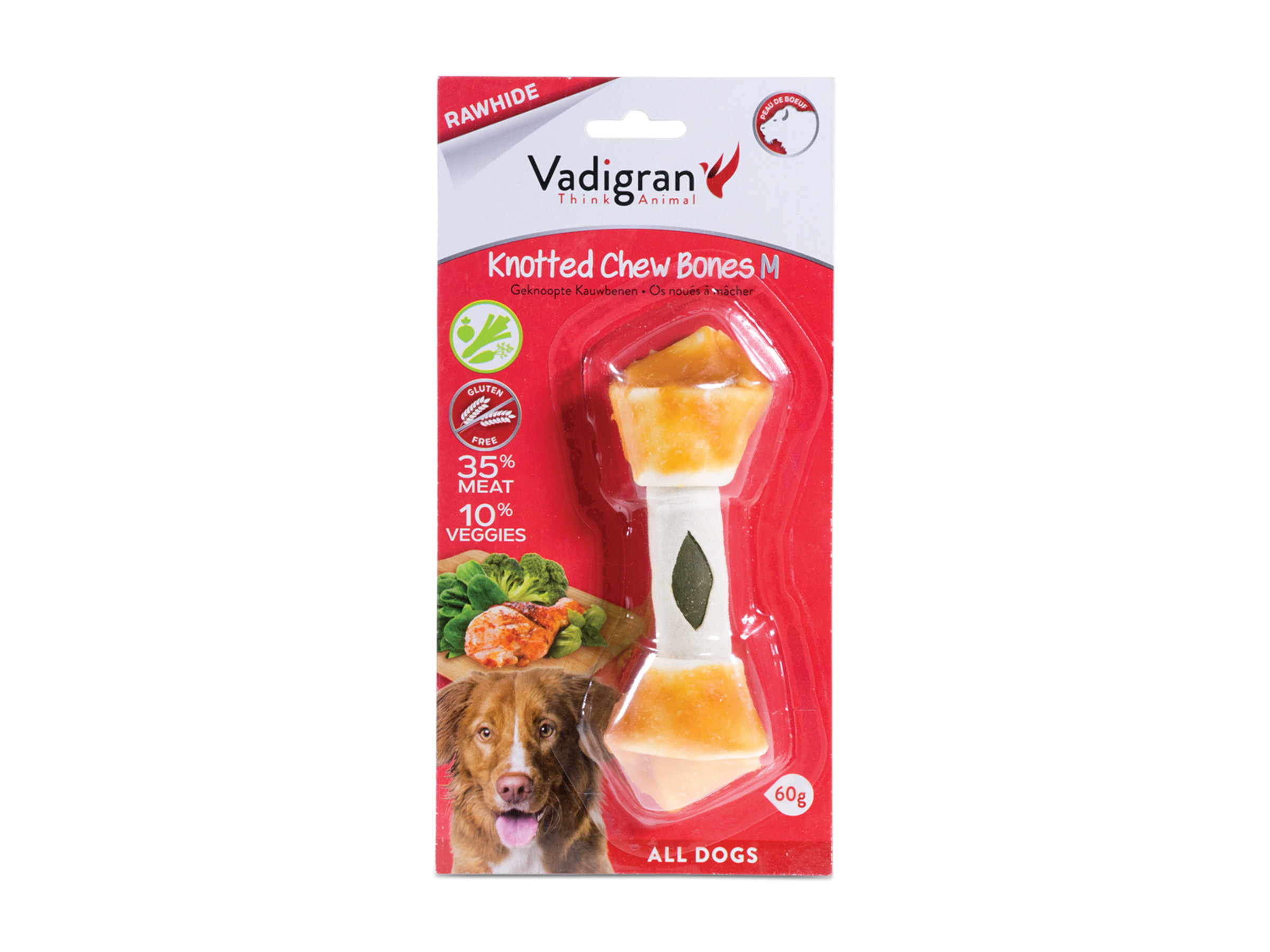 De Vadigran kauwbotten zijn de ideale snacks voor uw hond. Ze zijn samengesteld uit stevig geperste runderhuid, 35% kippenvlees en 10% groenten, dat het kauwbot een geur en smaak geeft die het natuurlijke kauwinstinct van uw hond zullen wakker maken. Ze bevatten geen kunstmatige kleurstoffen of smaken.Deze snacks bevatten geen gluten, zijn caloriearm en heel goed verteerbaar.Deze smaakvolle snacks stimuleren je hond om te spelen en te kauwen. Het is belangrijk om de hond veel plezier te bezorgen, het houdt hem bezig en vermijdt dat hij zich zal gaan vervelen.