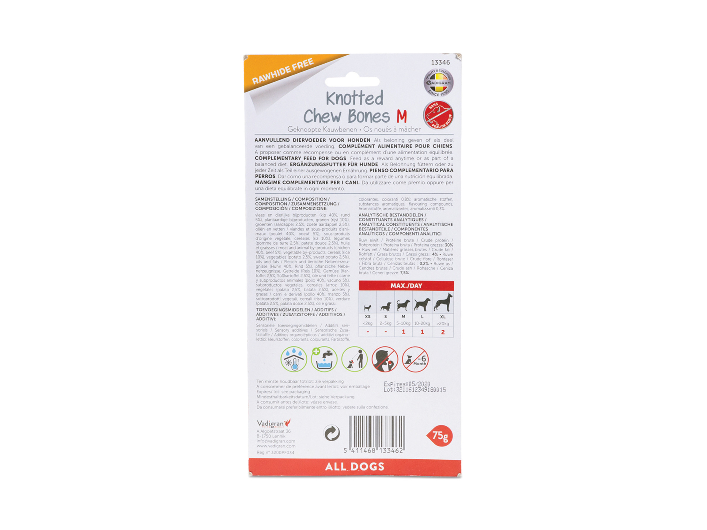 De Vadigran geperste kauwbotten zijn de ideale snacks voor uw hond. Ze zijn bevatten geen runderhuid en ze zijn samengesteld uit 45% vlees, dat het kauwbot een geur en smaak geeft die het natuurlijke kauwinstinct van uw hond zullen wakker maken.Deze snacks bevatten geen gluten, zijn caloriearm en heel goed verteerbaar.Deze smaakvolle snacks stimuleren je hond om te spelen en te kauwen. Het is belangrijk om de hond veel plezier te bezorgen, het houdt hem bezig en vermijdt dat hij zich zal gaan vervelen.