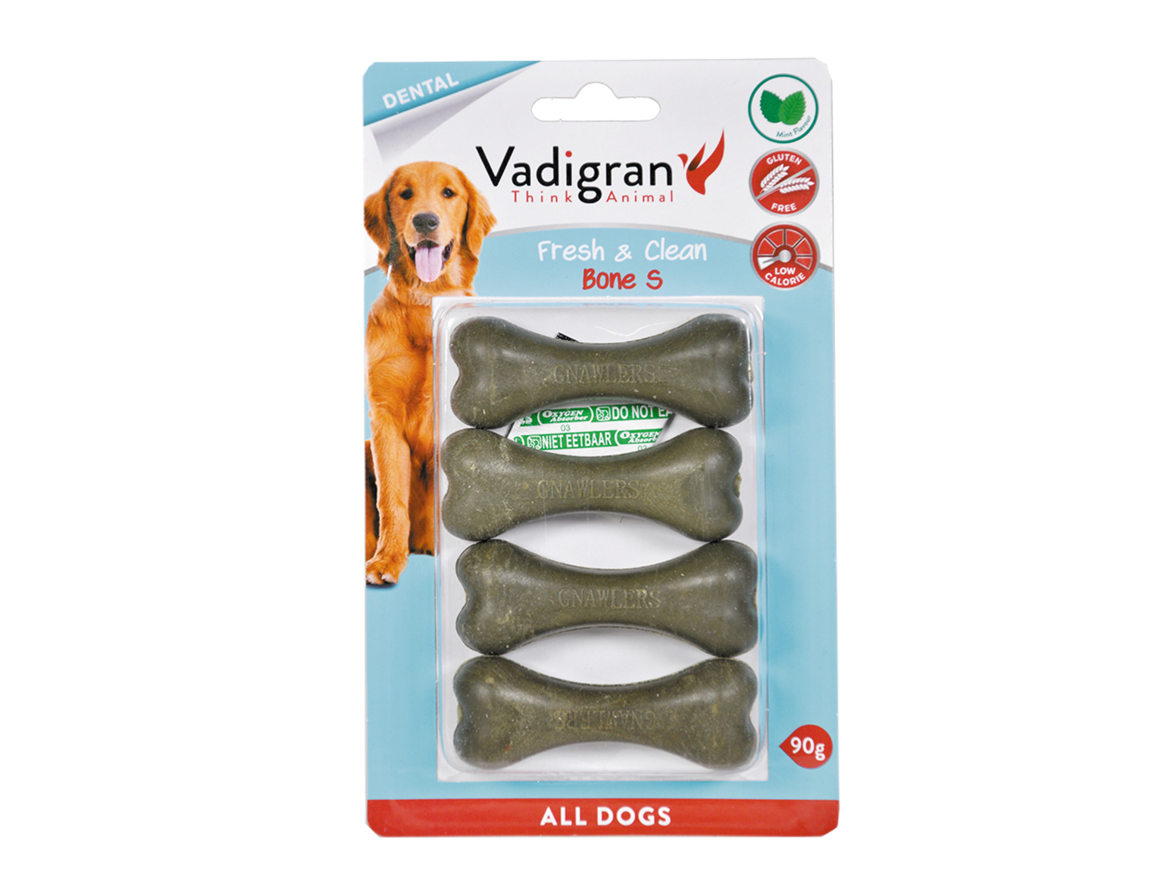 De Vadigran Fresh & Clean geperste kauwbotten zijn heerlijke, gezonde snacks en hebben een muntsmaak.Het gepest bot is licht verteerbaar en is ook uitstekend voor de mondhygiëne. Het helpt om tandsteen te voorkomen, verstevigt de kaak en draagt bij tot de reiniging van de tanden en het tandvlees. Bovendien krijgt de hond dankzij de muntsmaak een frisse adem.Deze smaakvolle snacks stimuleren je hond om te spelen en te kauwen. Het is belangrijk om de hond veel plezier te bezorgen, het houdt hem bezig en vermijdt dat hij zich zal gaan vervelen.