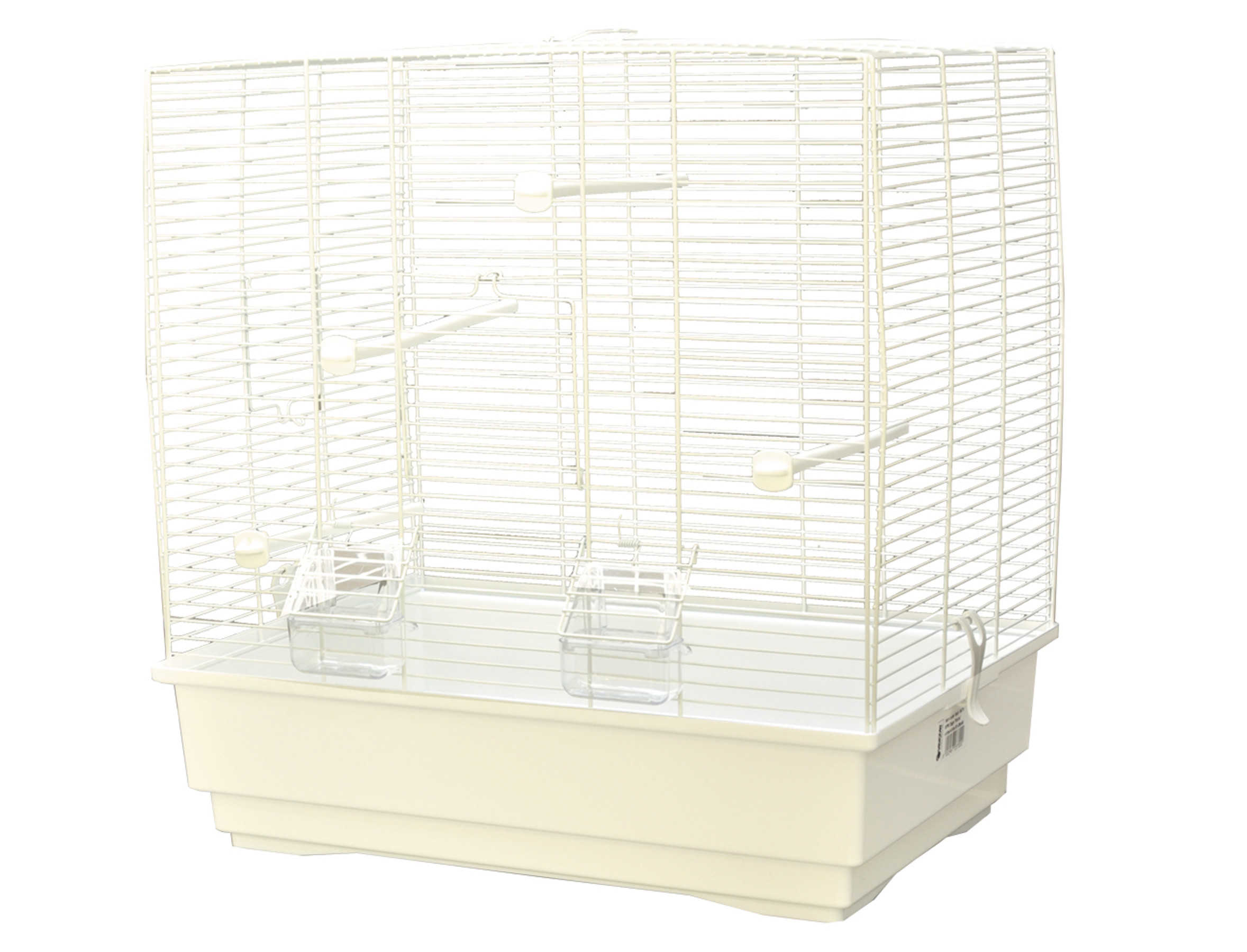 Vogelkooi, inbegrepen zitstokjes en plastic eetbakjes.Makkelijk en snel te reinigen.Makkelijke montage.