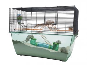 Uitgerust met kleurrijke accesoires zoals een ruim platform, een roestvrije stalen kommetje, een looprad, een drinkfles en een hamster huisje. De draadafstand tussen de draden van het rooster bedraagt 9,5 mm, wat de kooi geschikt maakt voor jonge dieren.