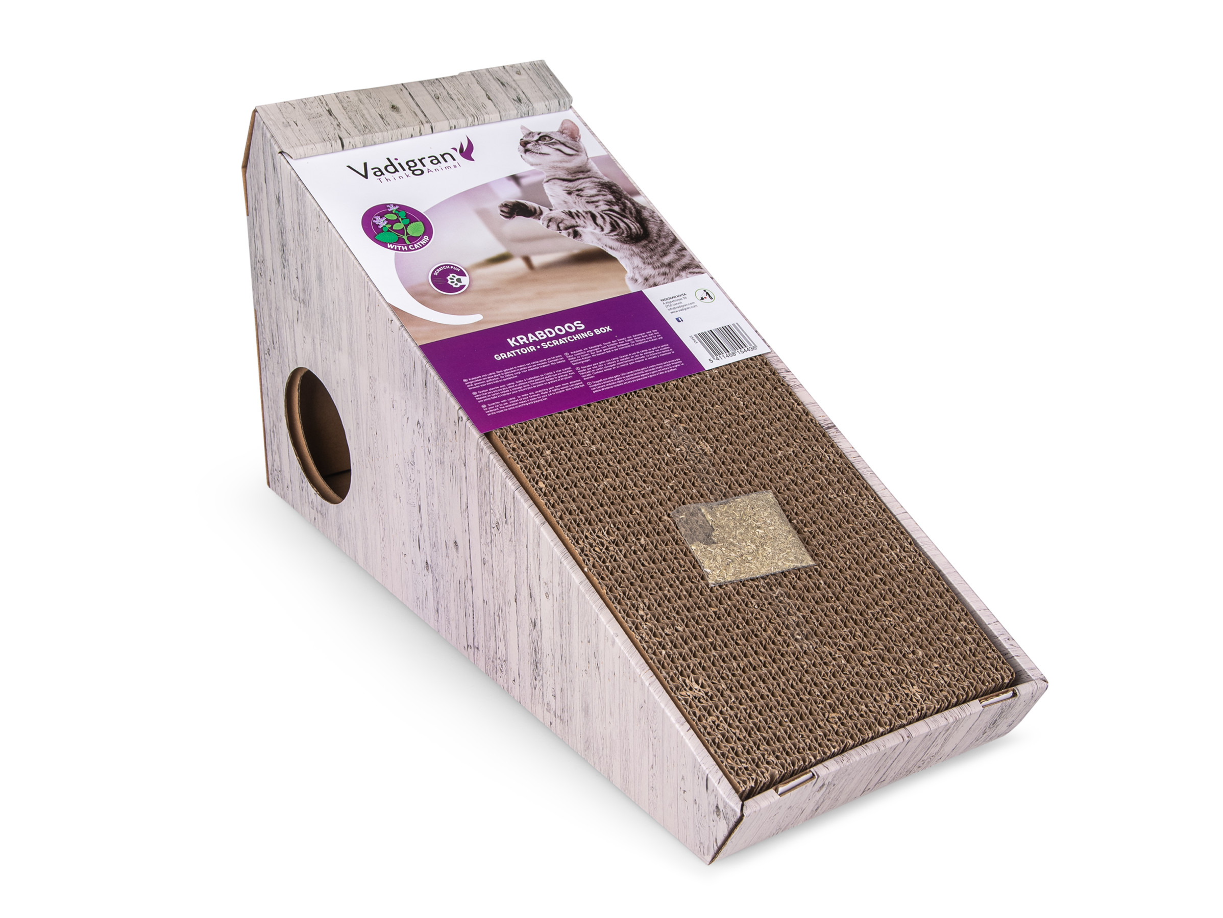 Het balletje aan de ingang zorgt voor extra speelplezier. Het bijgeleverde kattenkruid stimuleert u kat om hieraan te krabben. Met dit kartonnen krabdoosje kunt uw kitten extra prikkelen om aan het kraboppervlak te krabben in plaats van aan uw meubels of dozen in huis. Geschikt voor alle katten, groot of klein.