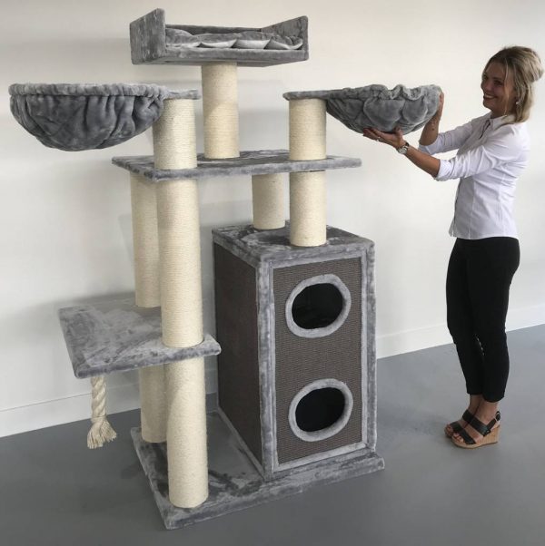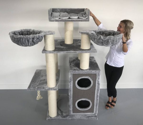 De krabpaal voor grote katten Cat Paradise Light Grey van RHRQuality is een paradijs voor katten welke erg groot en stevig is, met Ø 15 cm dikke sisalpalen en ruim 80 KG totaalgewicht. Zeer geschikt voor grote of zware katten.