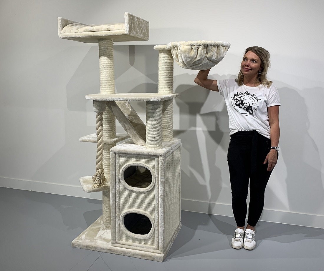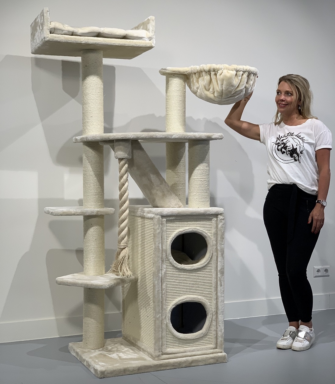 De krabpaal Cat Penthouse Cream van RHRQuality is een paradijs voor grote katten. De krabpaal is zeer groot en sterk met Ø12cm dikke sisalpalen en ruim 50 Kg totaalgewicht.