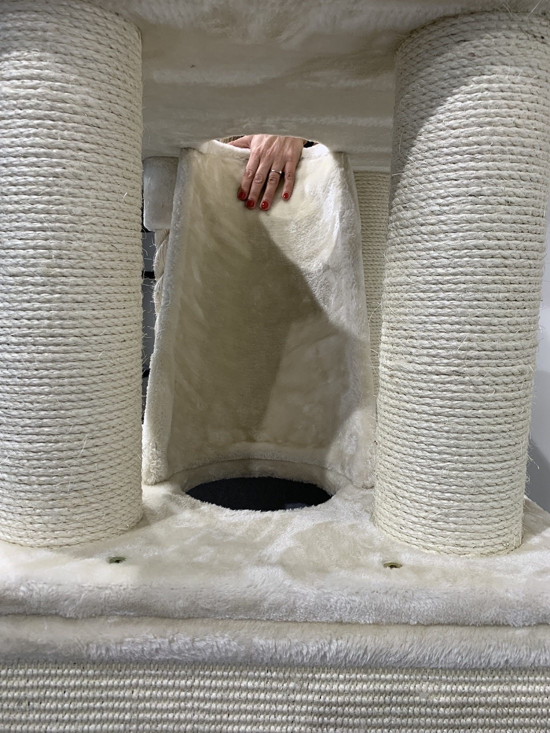 – Sisalpalen zijn Ø12cm en het 6 mm dikke natuursisal is verlijmd aan de palen. (Mocht uw kat het sisaltouw doorkrabben “rolt” het touw niet naar beneden).