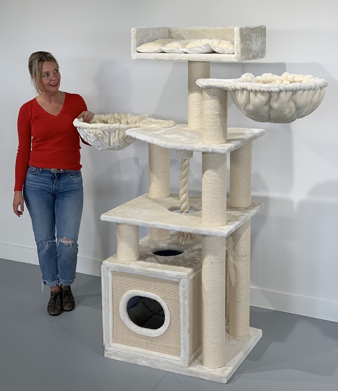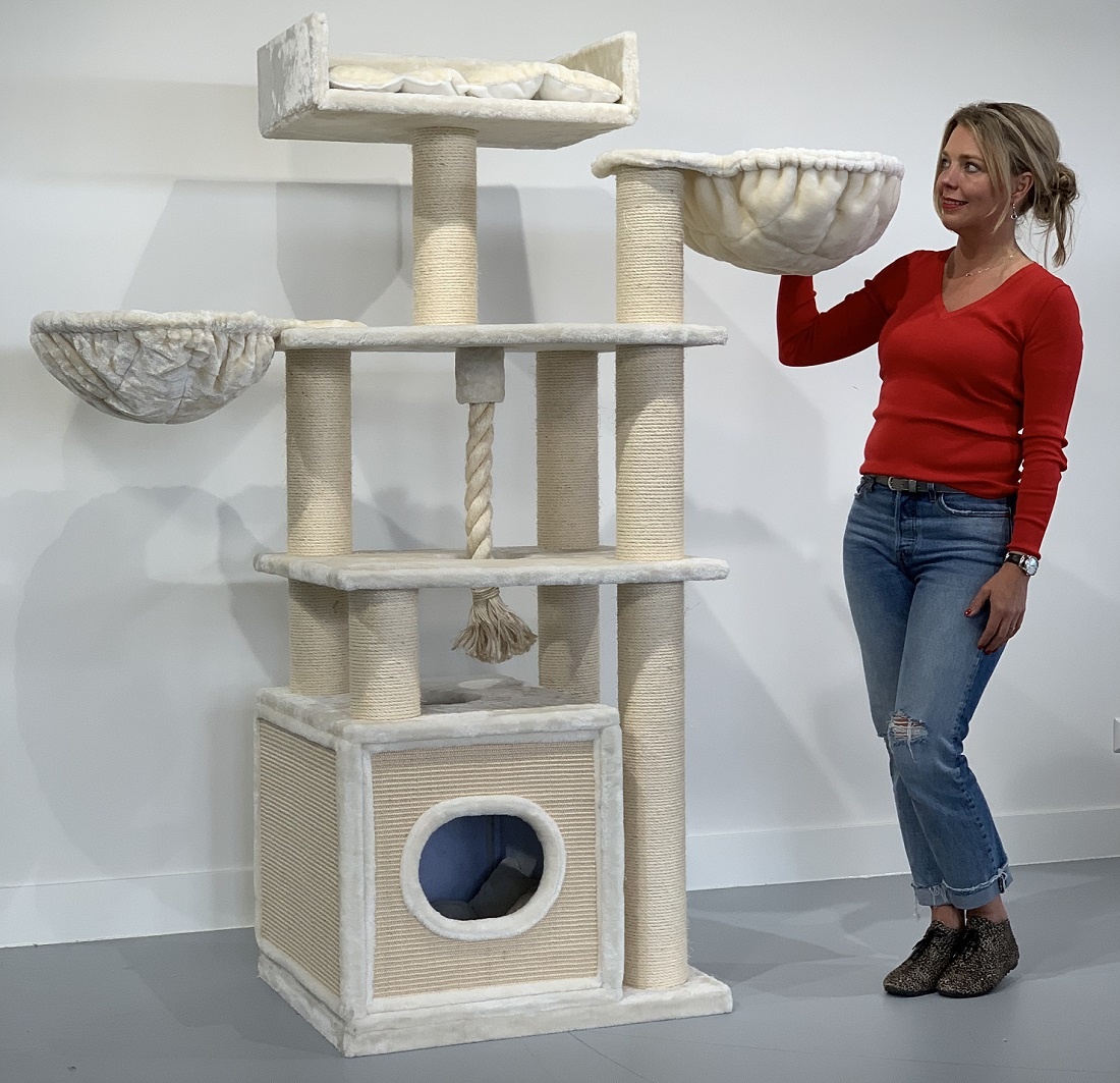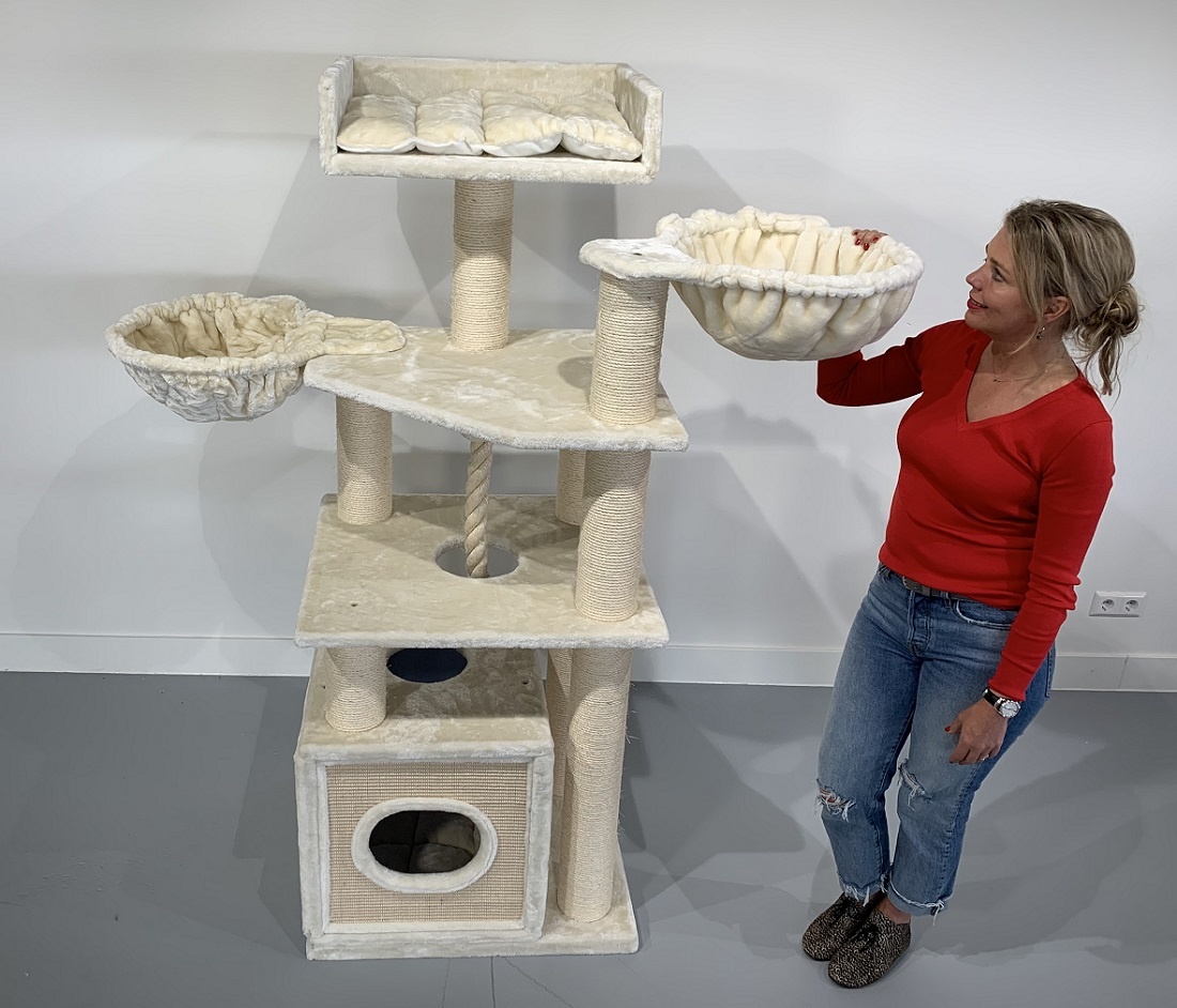 De krabpaal voor grote katten Cat Relax Cream van RHRQuality is een paradijs voor katten, en is erg groot en stevig, met Ø12 cm dikke sisalpalen en 64kg totaalgewicht.
