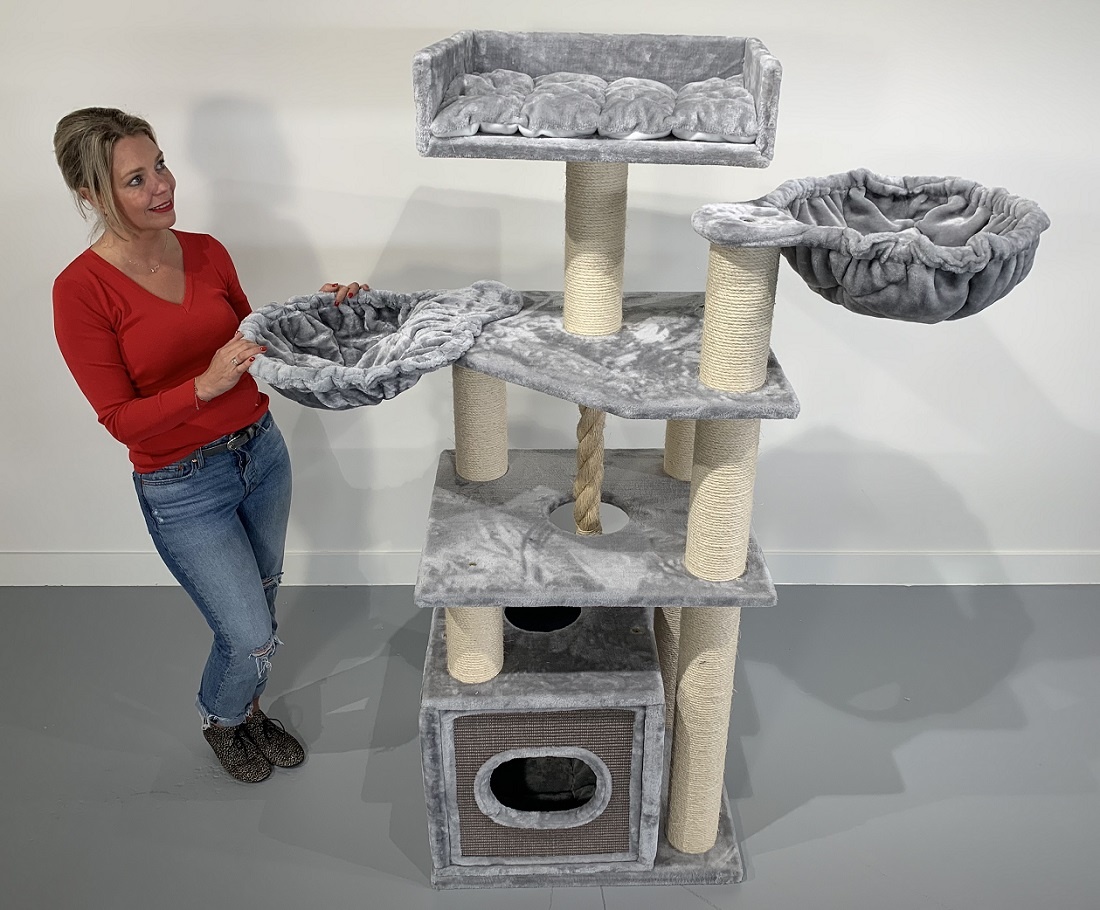 De krabpaal voor grote katten Cat Relax Light Grey van RHRQuality is een paradijs voor katten, en is erg groot en stevig, met Ø12 cm dikke sisalpalen en 64kg totaalgewicht.