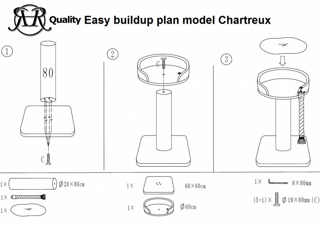 Krabpaal Chartreux Crème is ideaal voor grote katten en zeer stabiel met zijn 20cm diameter dikke sisalpaal en verzwaarde bodemplaat van 60×60 en 4 cm dik.