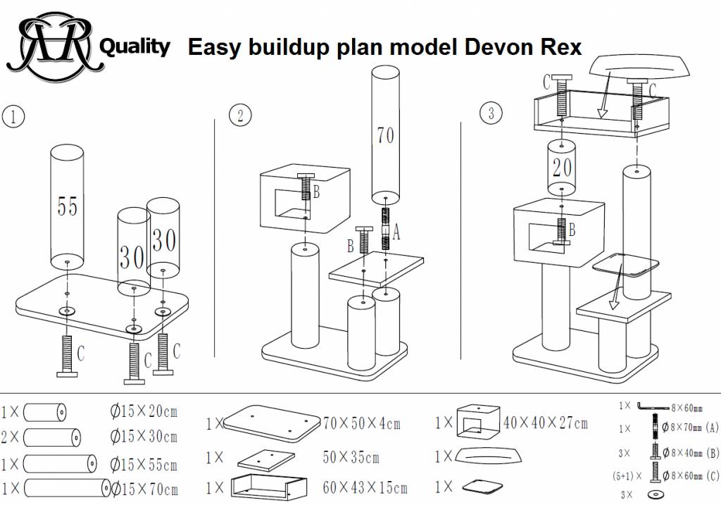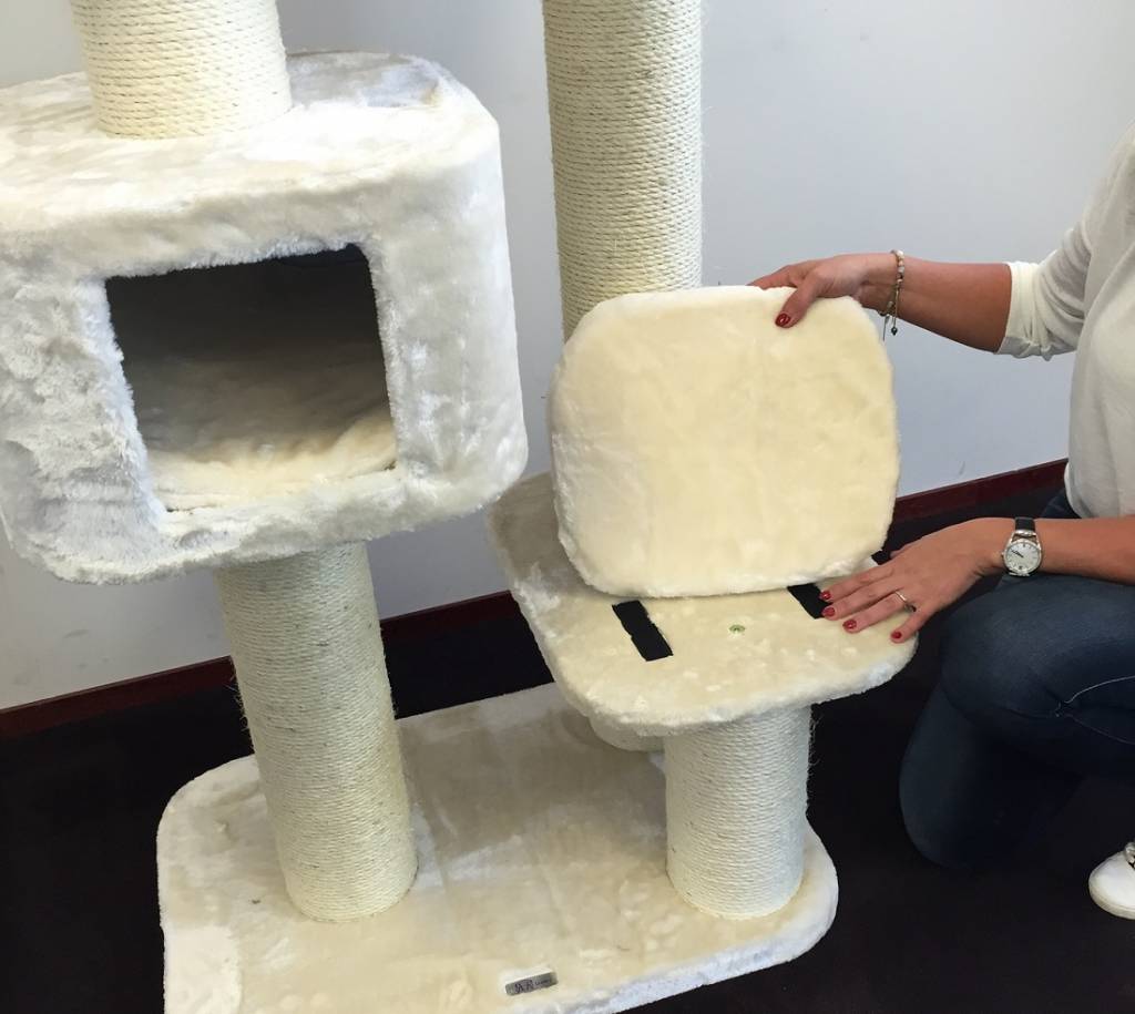 Design Krabpaal Devon Rex Crème voor katten van RHRQuality is een stevige en stijlvolle krabpaal met wel 15cm dikke sisalpalen en een erg grote ligplek bovenop. Met een leuk speelhuis die draaibaar is en( 40x40x27 met grote ingang van 20x20cm) en 2 afneembare kussentjes. Beide zitten vast met klittenband. Met meerdere sisalpalen van 15 cm dik om lekker aan te krabben met ruim voldoende krablengte ook voor grote katten.