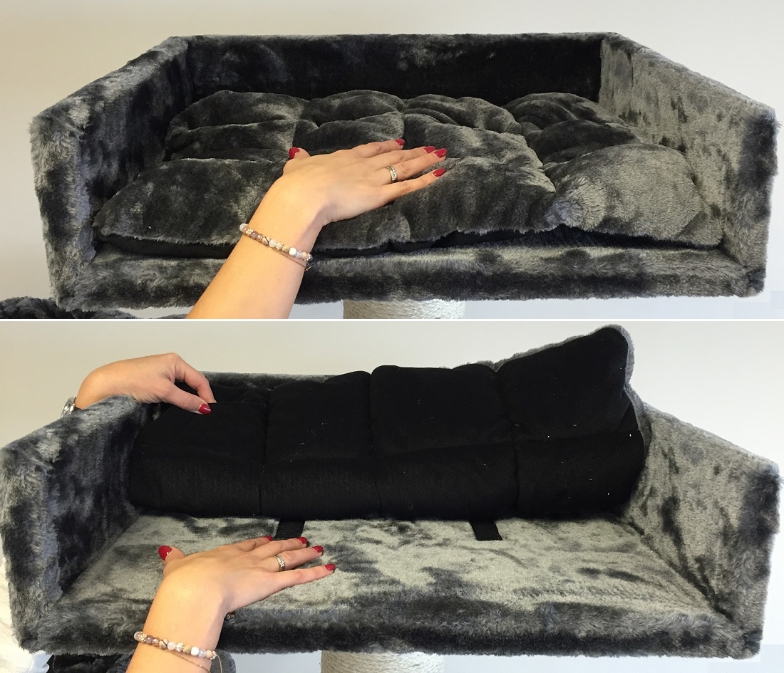 – Kussen de Luxe met stiknaad en ligt vast met klittenband.