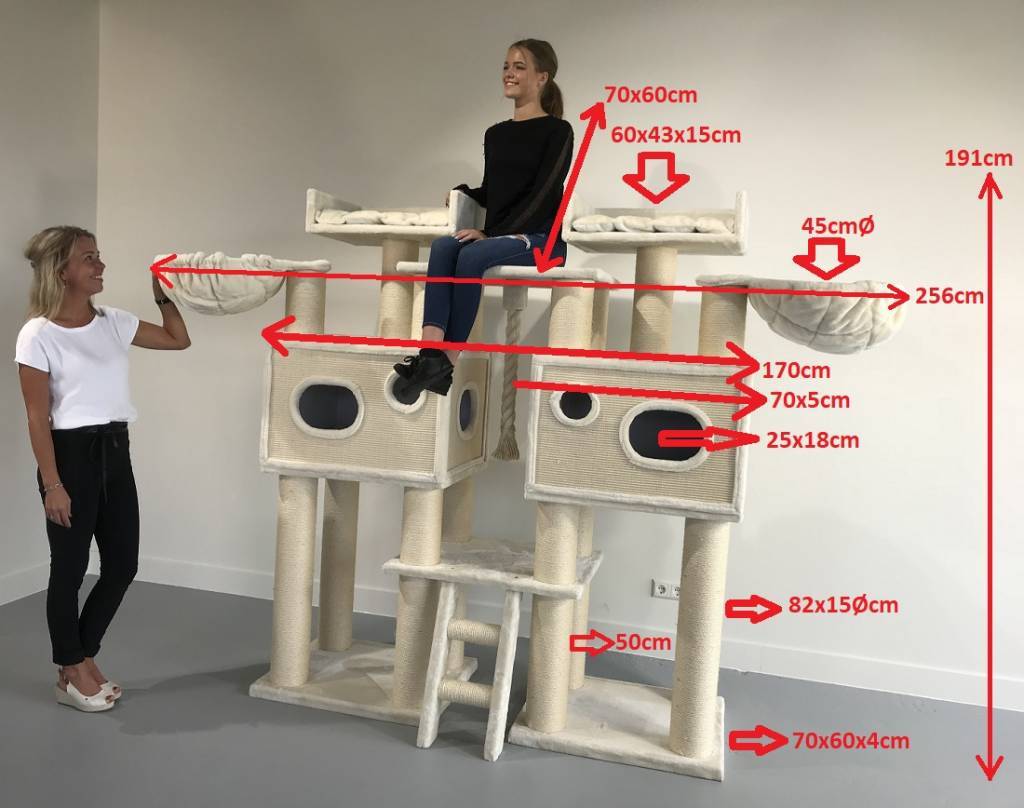 is een paradijs voor katten die erg groot en stevig is met 15cmØ dikke sisalpalen en ruim 100KG totaalgewicht.. Ook zeer geschikt voor grote of zware katten.