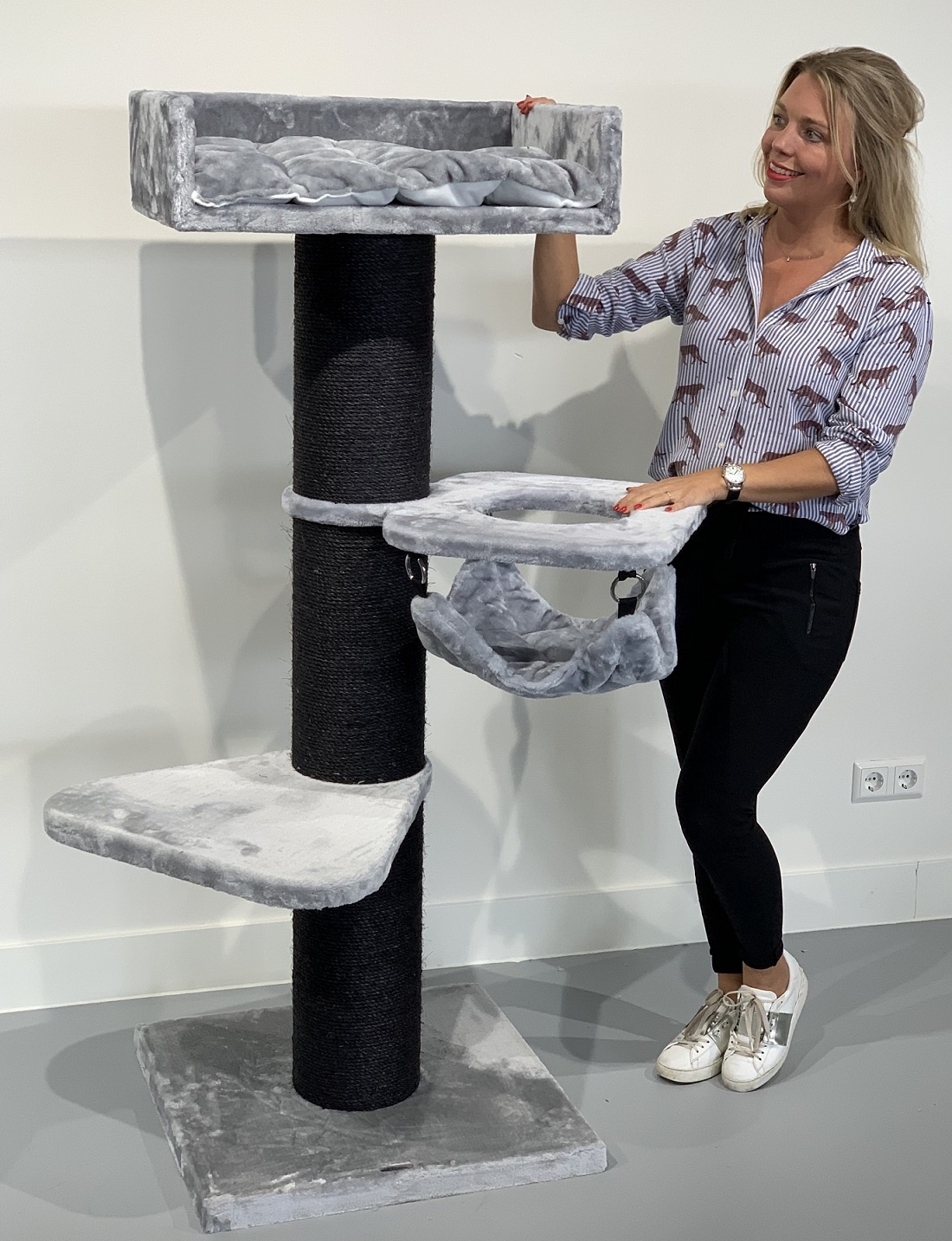 Ook deze krabpaal is opgebouwd te zien in onze krabpaal Showroom.