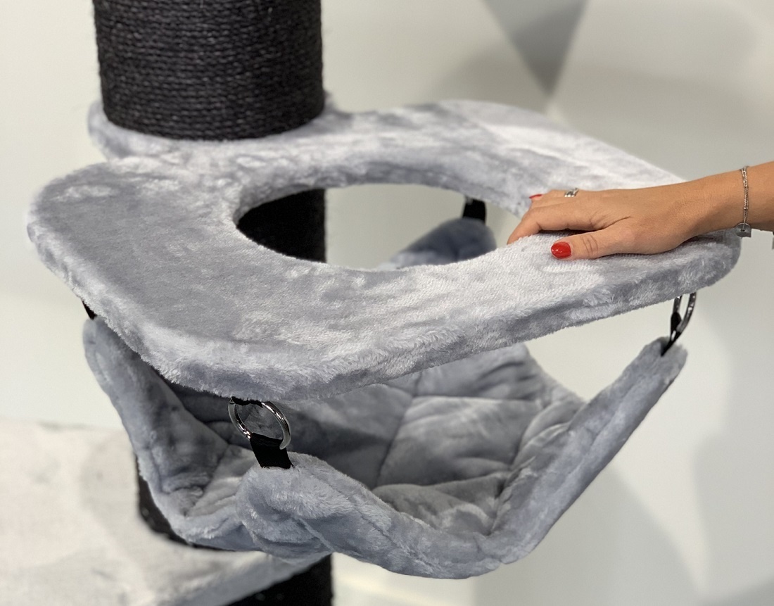 Krabpaal Royalty Crown is een krabpaal voor zware katten als Ragdoll of Maine coon of voor de klant die echt een stevige krabpaal wenst. De krabpaal Royalty Crown heeft 1 groot (55×55) draaibaar plateau en een draaibaar plateau met daaronder een hangmat die extra gevoerd is. Daarboven een enorme directiezetel van 60×43 cm met een 15cm hoge opstaande rand. Hierop ligt een 5 cm dik en heerlijk zacht kussen, welke uitneembaar is.