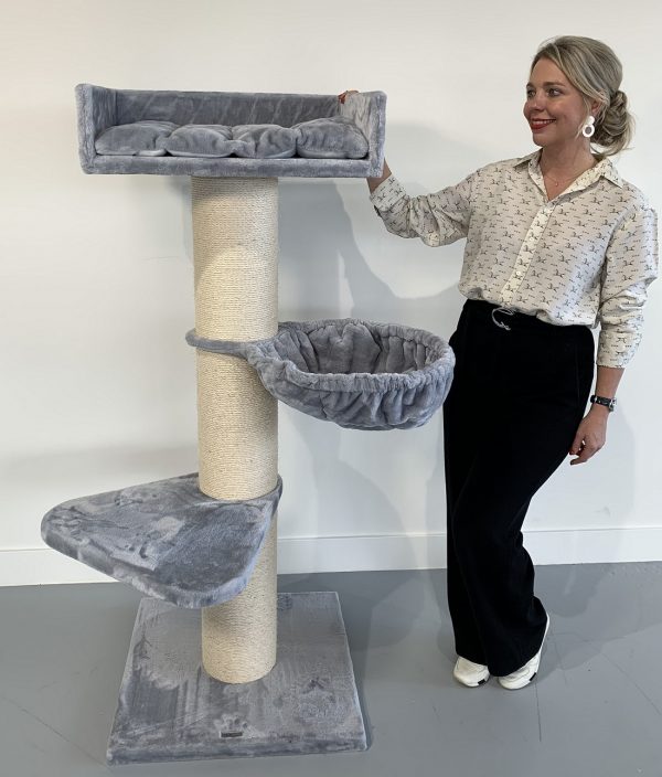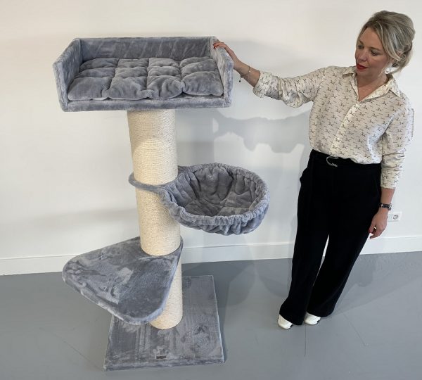 Deze compacte krabpaal heeft ruim aanbod van ligplaatsen voor uw kat. Een heerlijk ruime ligbak, comfortabele hangmat en een groot (55x55cm) ligplateau. De krabpaal heeft maar liefst 20cmØ dikke sisalpalen en de onderste sisalpaal is met 4 schroeven in de bodemplaat gemonteerd voor maximale stabiliteit, waardoor deze zeer stevig en stabiel is dus ook geschikt voor meerdere katten tegelijkertijd.