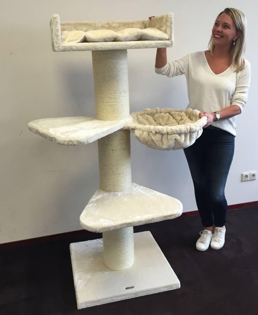 Krabpaal Royalty Plus crème wit is een zeer stevige krabpaal met zijn 20cm diameter dikke sisalpalen en verzwaarde bodemplaat van 60×60 en 4,5cm dik.