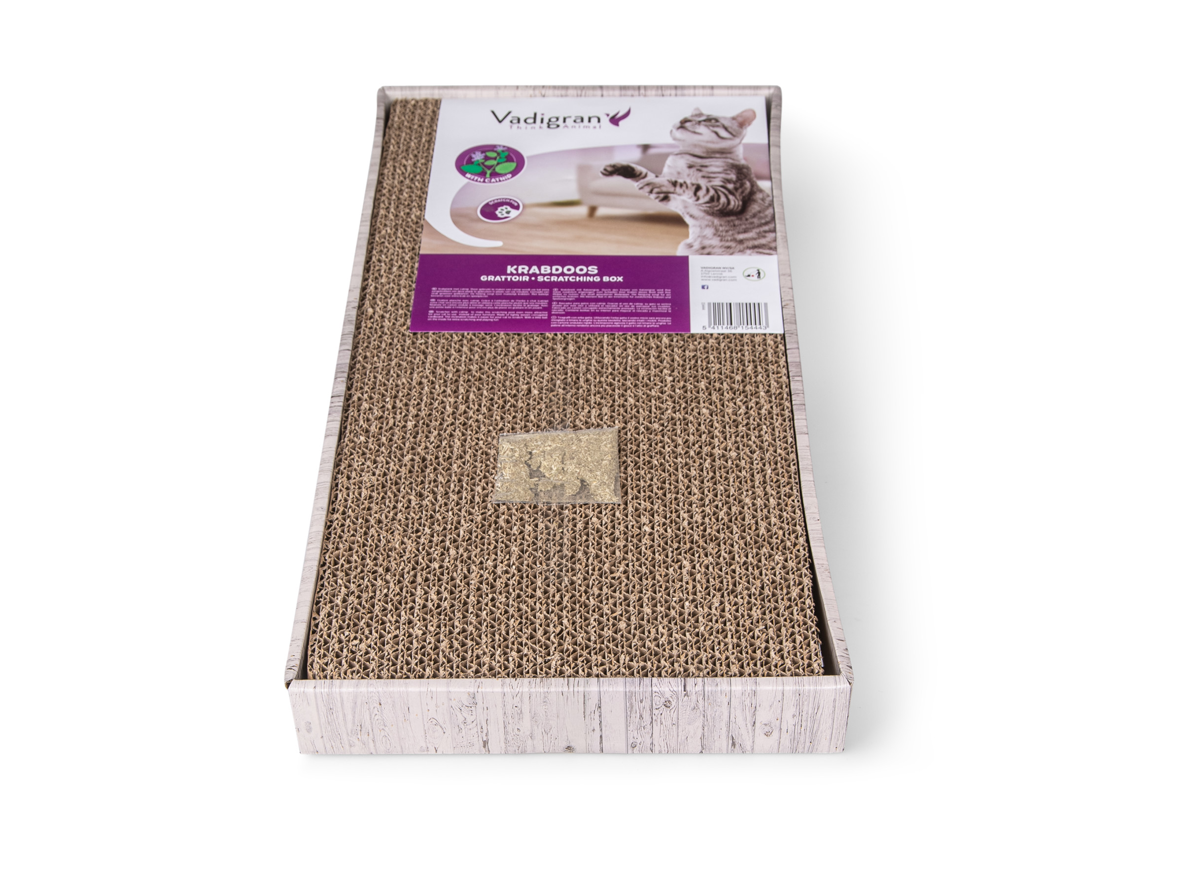 Het bijgeleverde kattenkruid stimuleert u kat om hieraan te krabben.Met dit kartonnen krabdoosje kunt uw kitten extra prikkelen om aan het kraboppervlak te krabben in plaats van aan uw meubels of dozen in huis. geschikt voor alle katten, groot of klein.