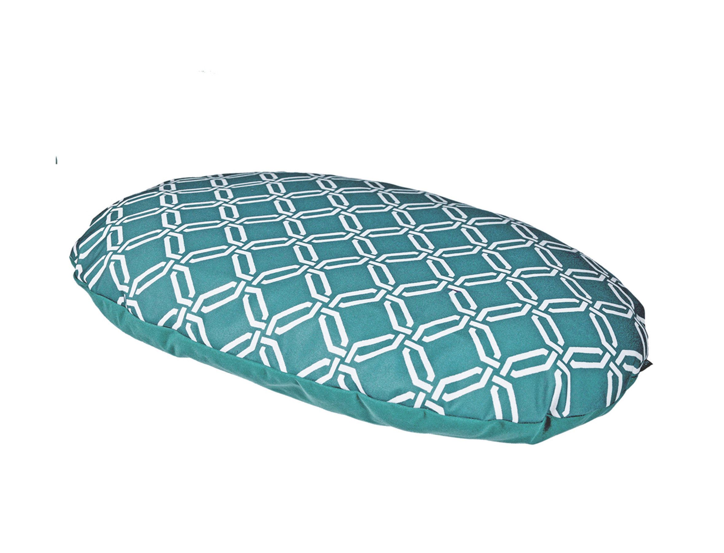 Het Giuliano kussen is een mooi ovaal hondenbed met moderne geometrische patronen aan de bovenkant. De trendy kleur geeft een moderne touch aan je interieur.Het kussen heeft aan beide zijden een verschillende stof. De afwerking is perfect langs elke kant waardoor je het kussen zowel langs beide zijden kan gebruiken.
