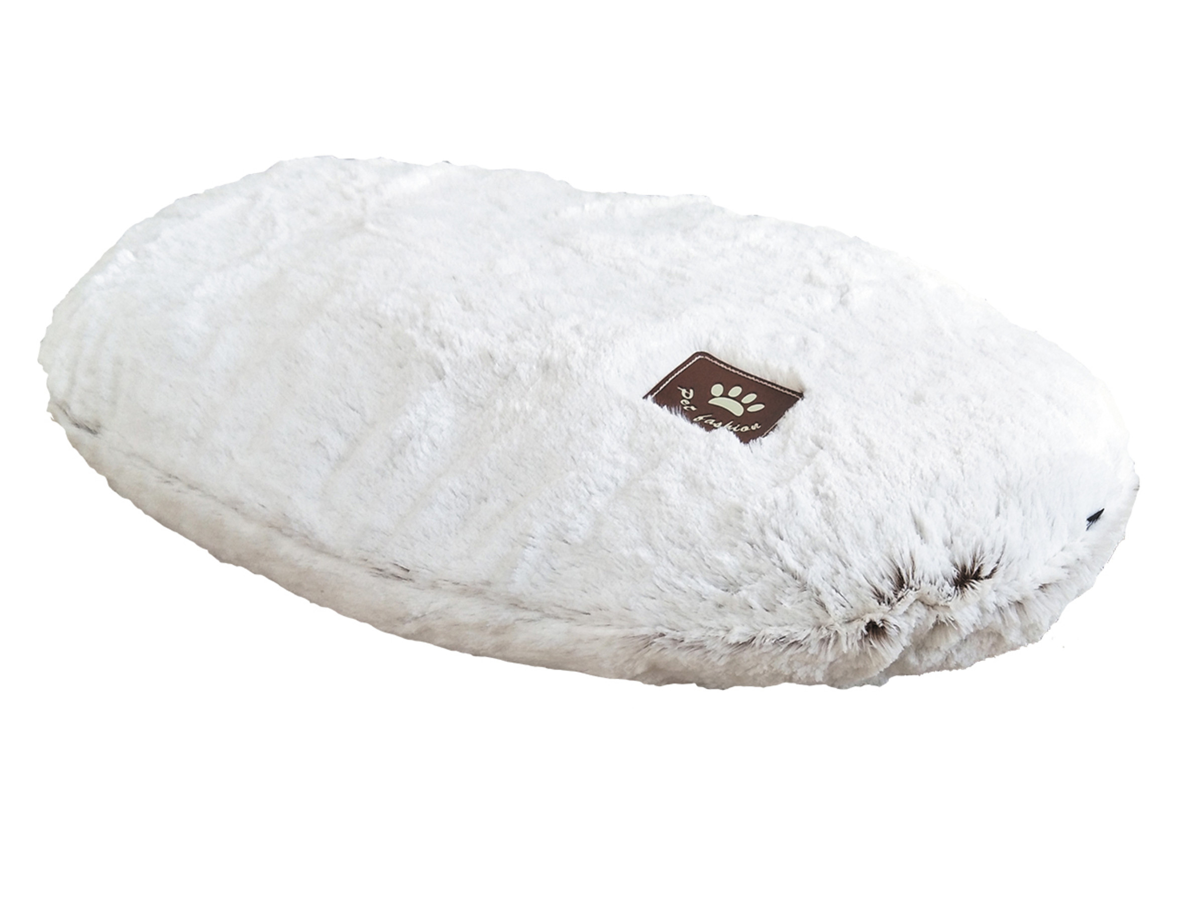 Het Snowhite kussen is een mooi ovaalvormig hondenbed, vervaardigd uit prachtige witte pluche.Het is vervaardigd uit een zeer zacht fleecemateriaal, knus en vervormbaar, 100% polyester, uw hond zal er dol op zijn.