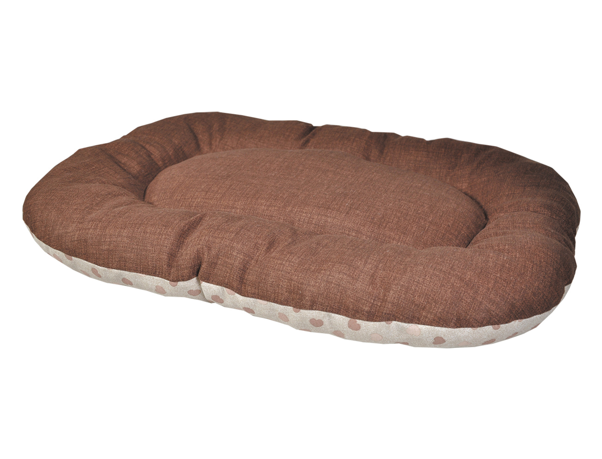 Het Valentina kussen is een mooi ovaal hondenbed, versierd met hartjes aan de bovenkant. De klassieke kleuren passen perfect in elk interieur.